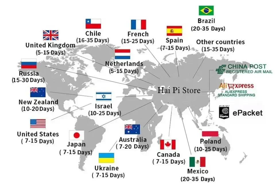Packages from our warehouse in China will be shipped by ePacket or EMS depending on the weight and size of the product. Packages shipped from our US warehouse are shipped through USPS.