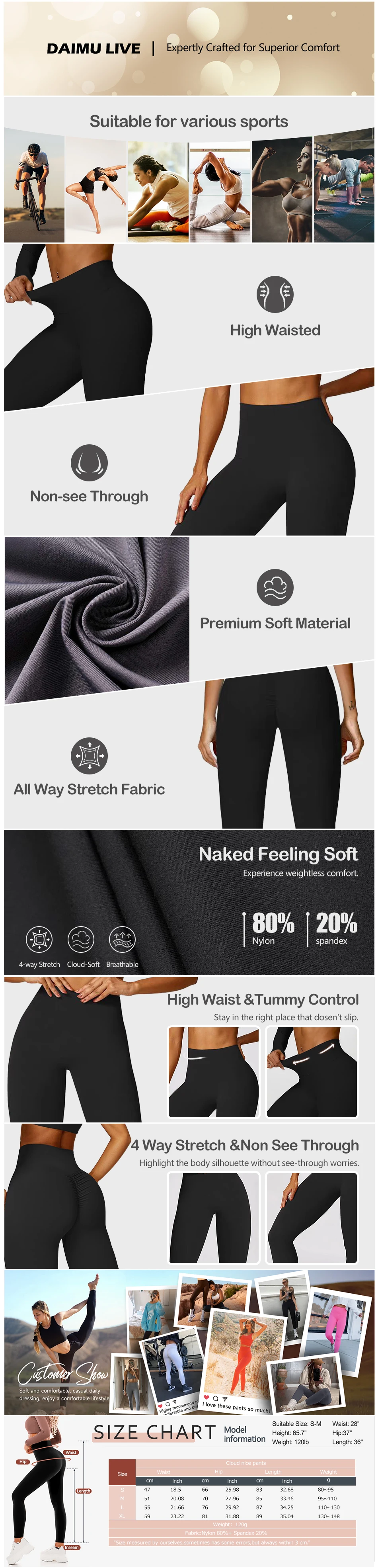 3.Please check the Size Chart ( Last Image ) Before Ordering. And don’t worry about size problems, you can through the Online Returns Center exchange it if the yoga pant size doesn’t fit.