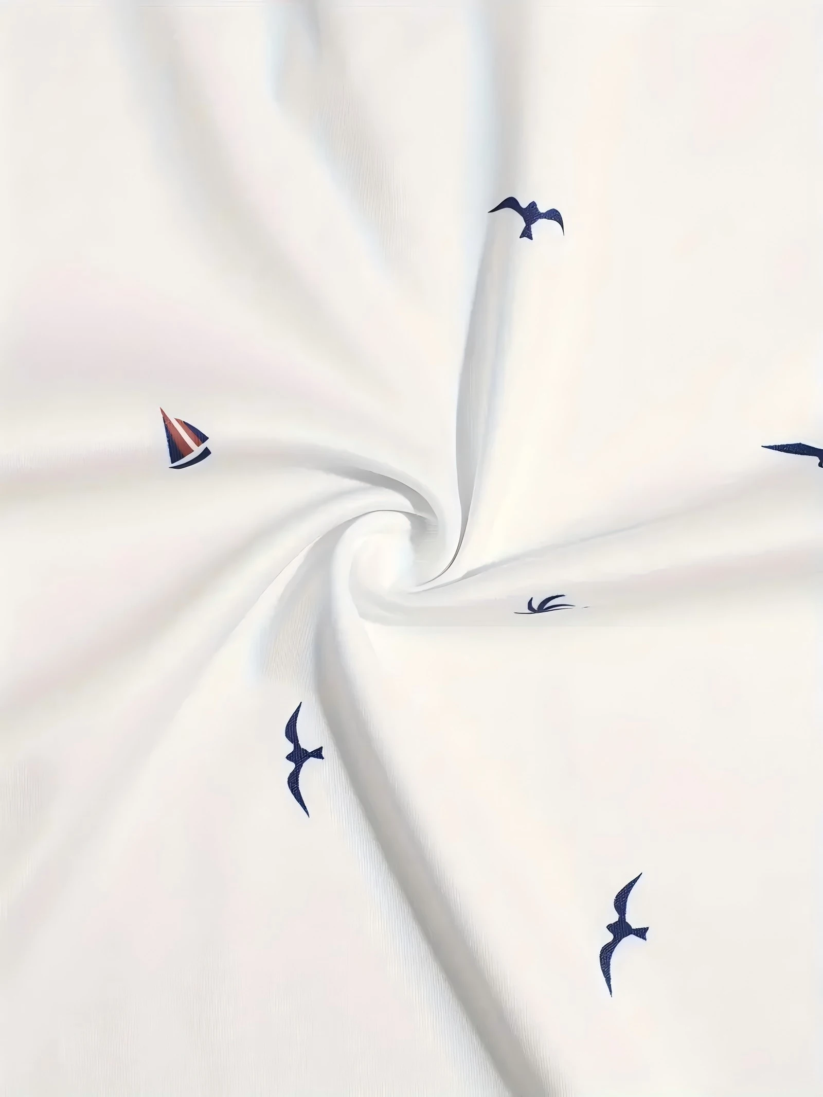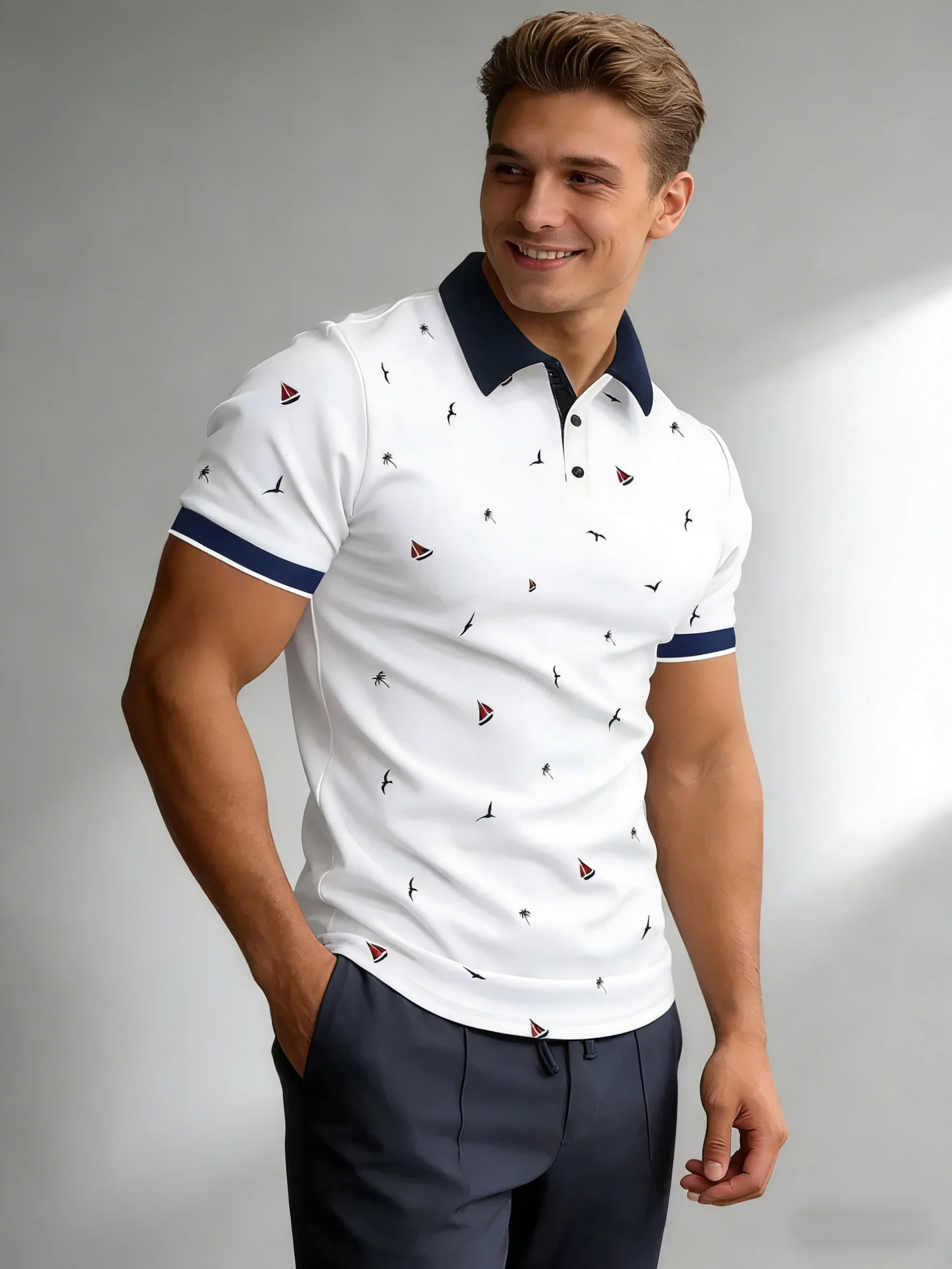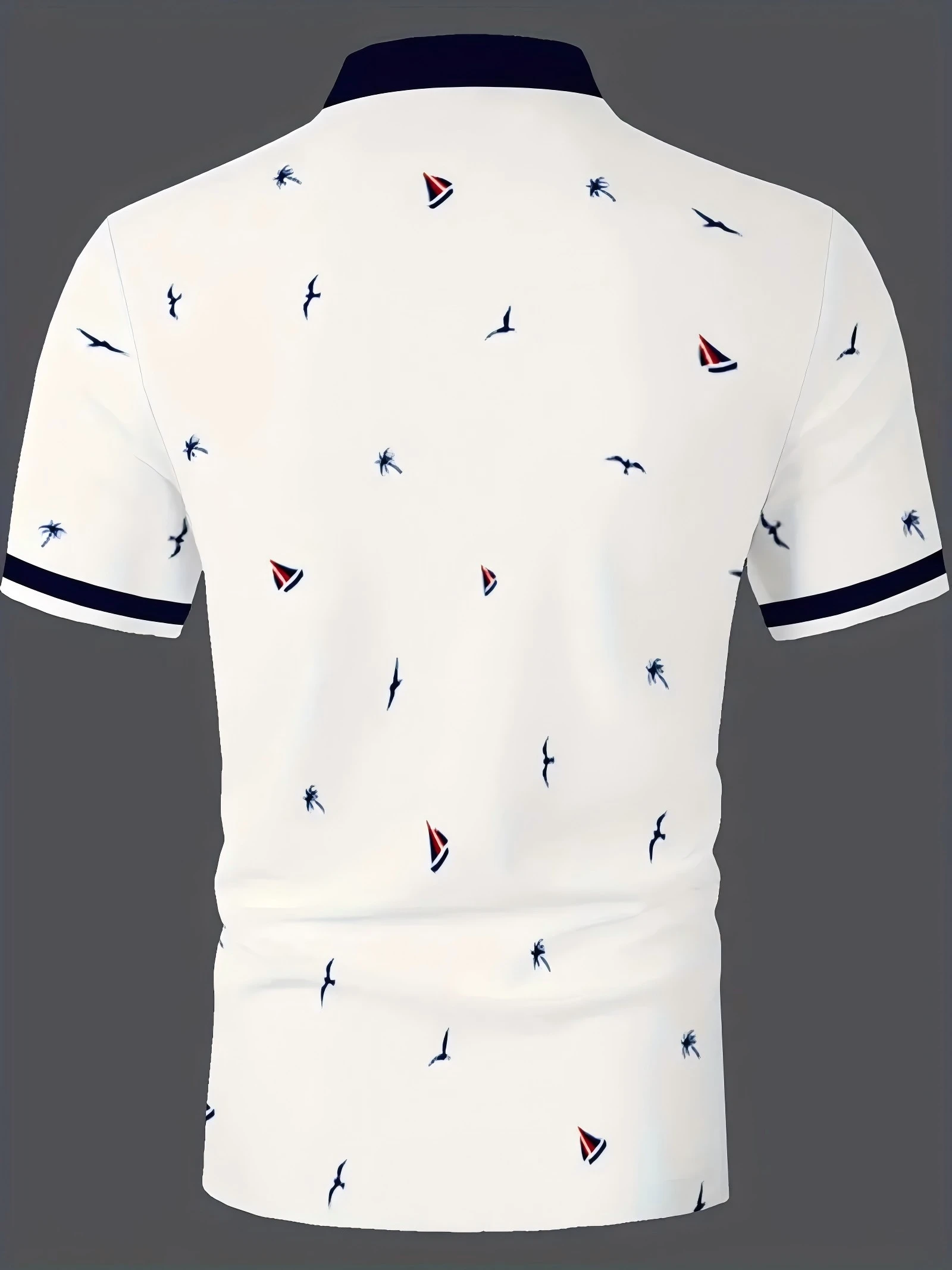 Summer men’s contrasting short sleeved polo shirt casual and simple short sleeved T-shirt fashionable sailing printed thin spo