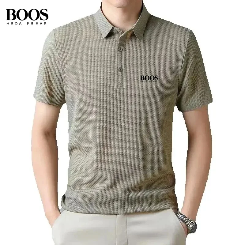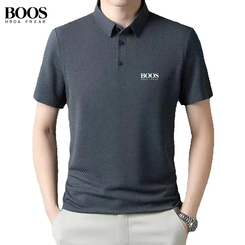 Summer men’s high-quality ice silk short sleeved polo shirt, new fashionable and casual silk smooth and refreshing T-shirt top