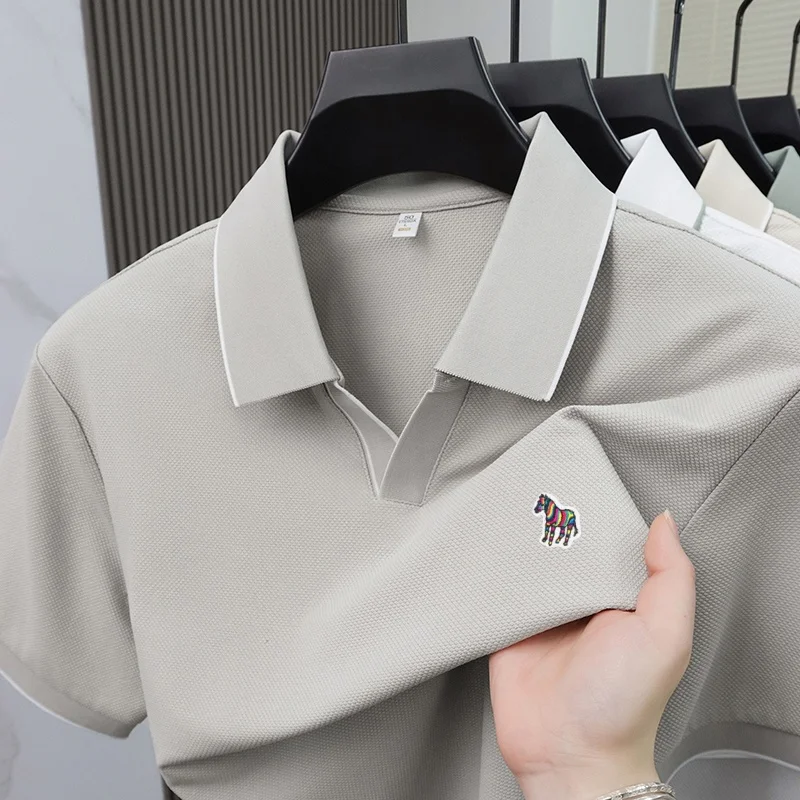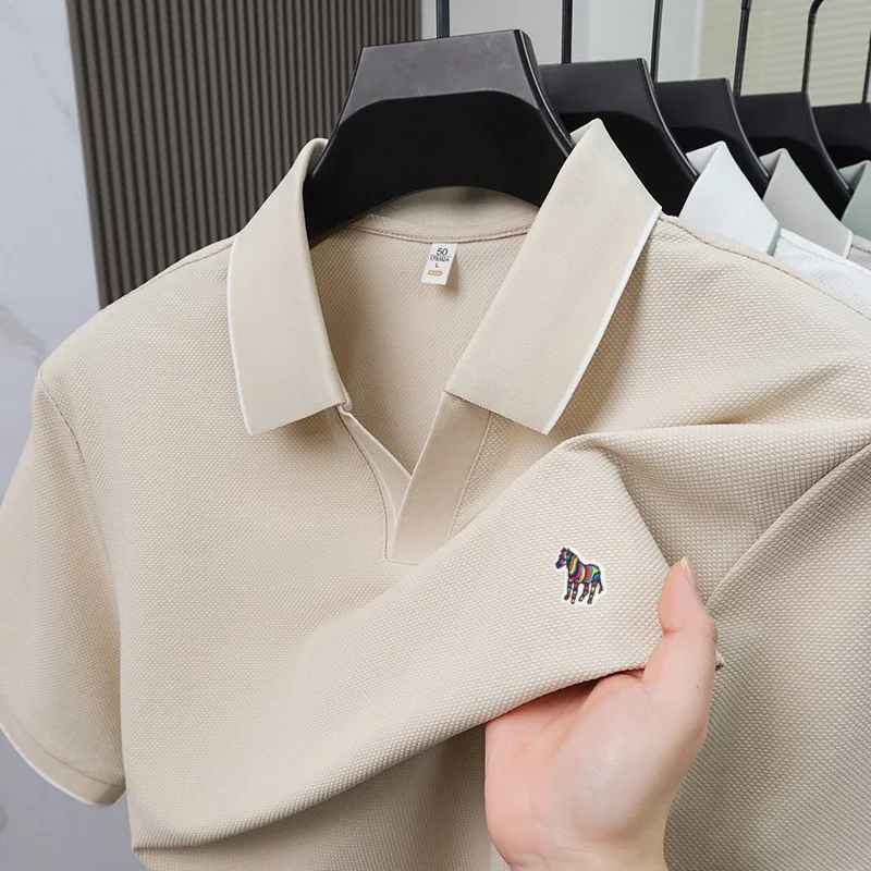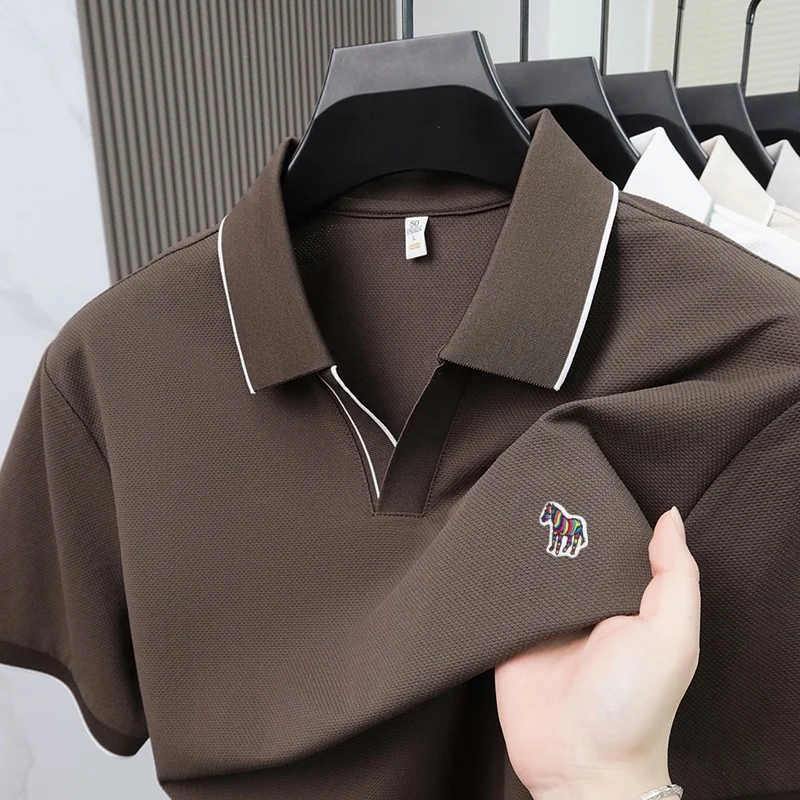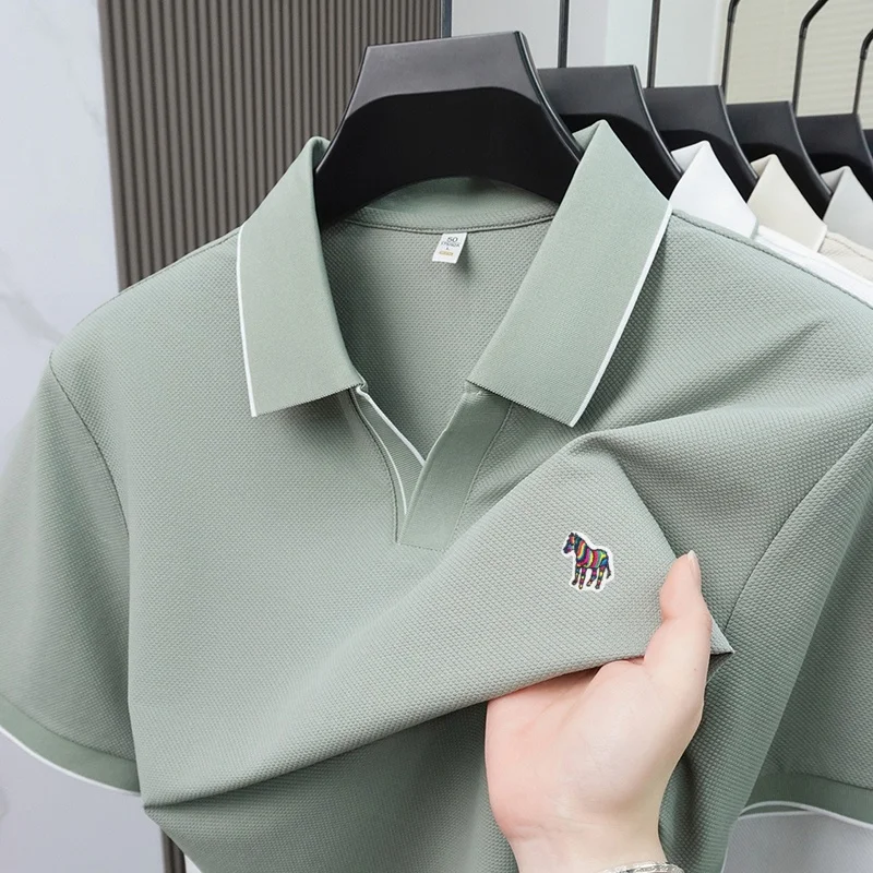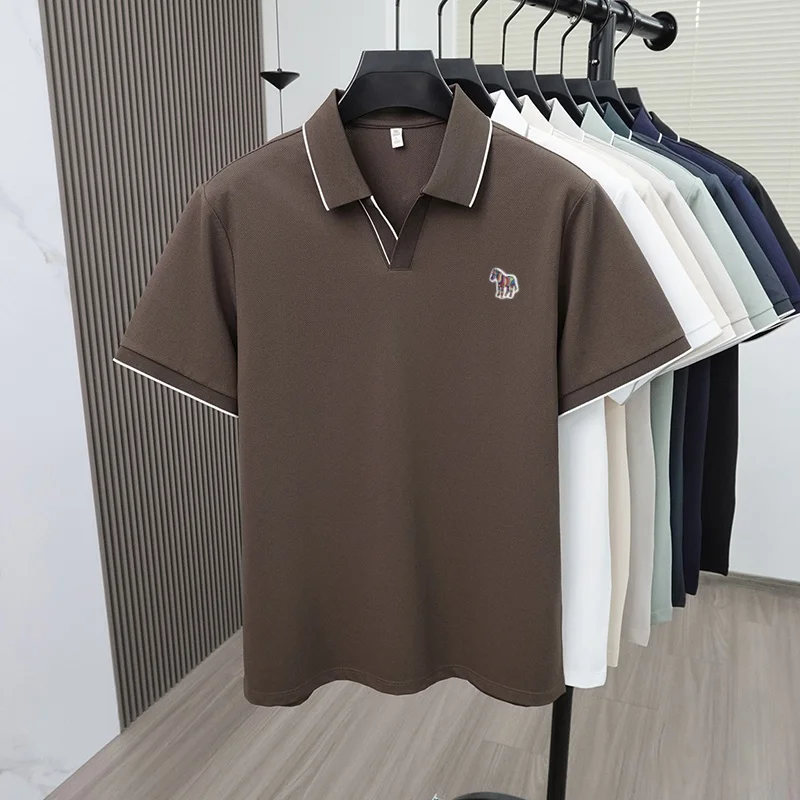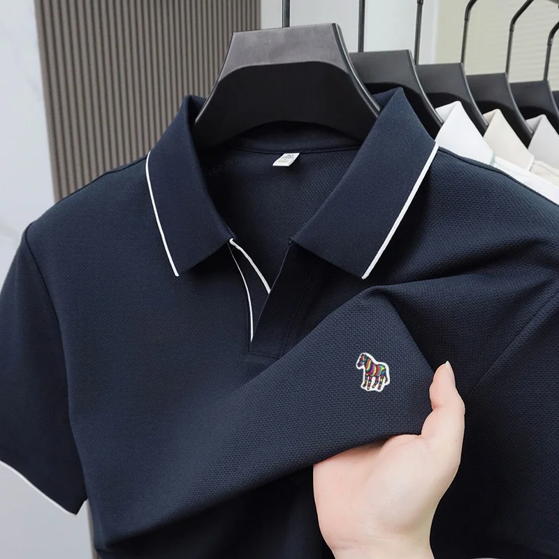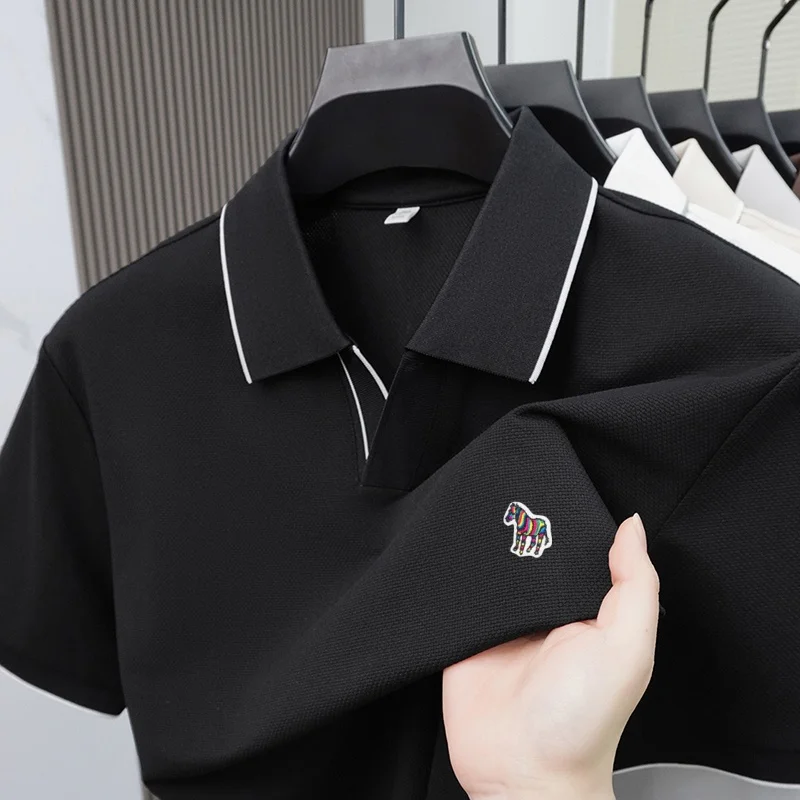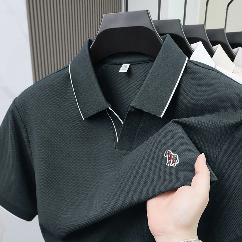 Summer men’s pony embroidered polo shirt men’s solid color short sleeve Tshirt comfortable breathable business casual top