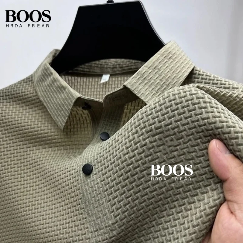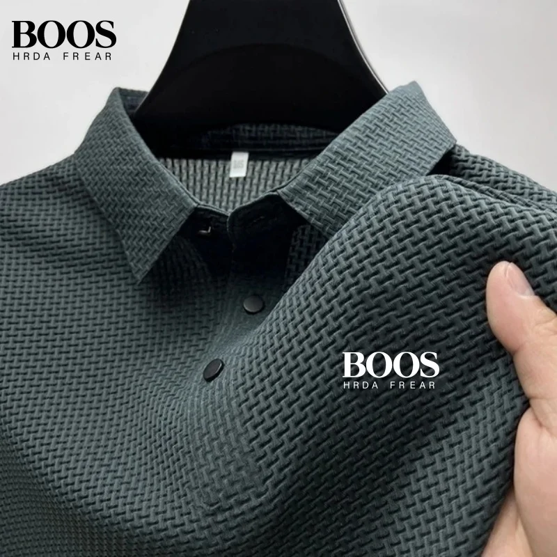 Summer New Embroidered Silk Elastic Polo Shirt for Men’s Luxury Trend Fashion Leisure Breathable Cool Short Sleeved T-shirt Top