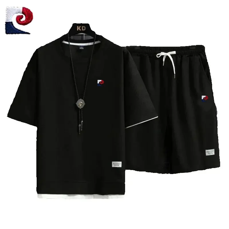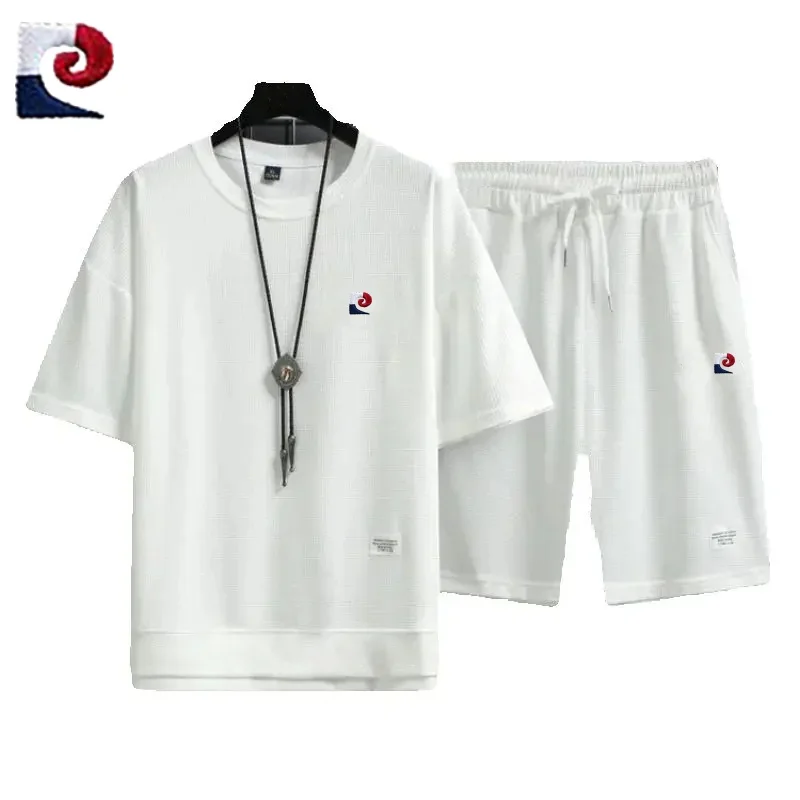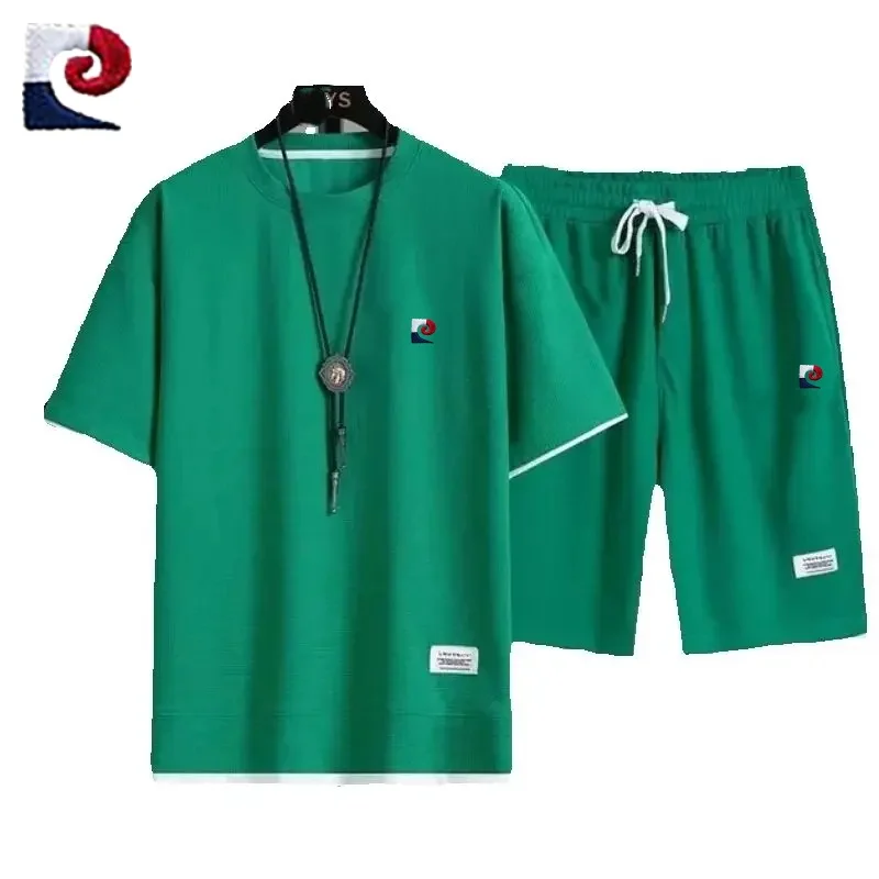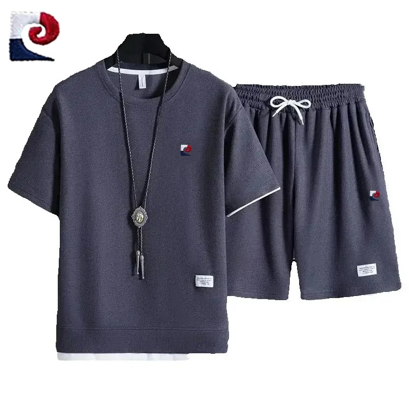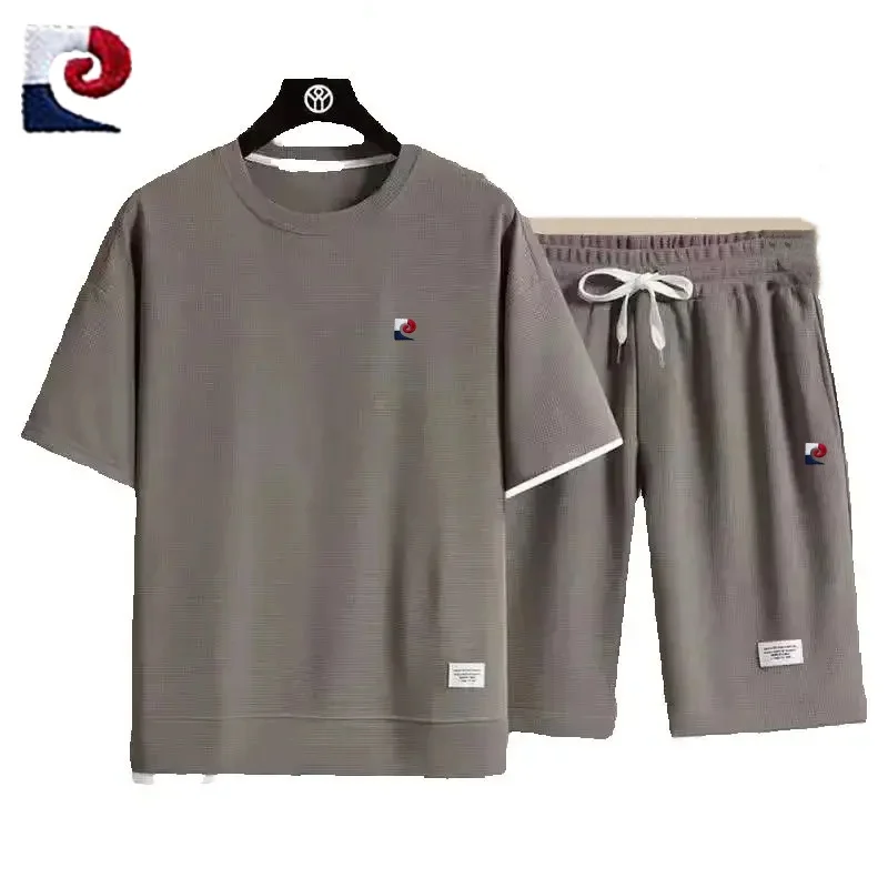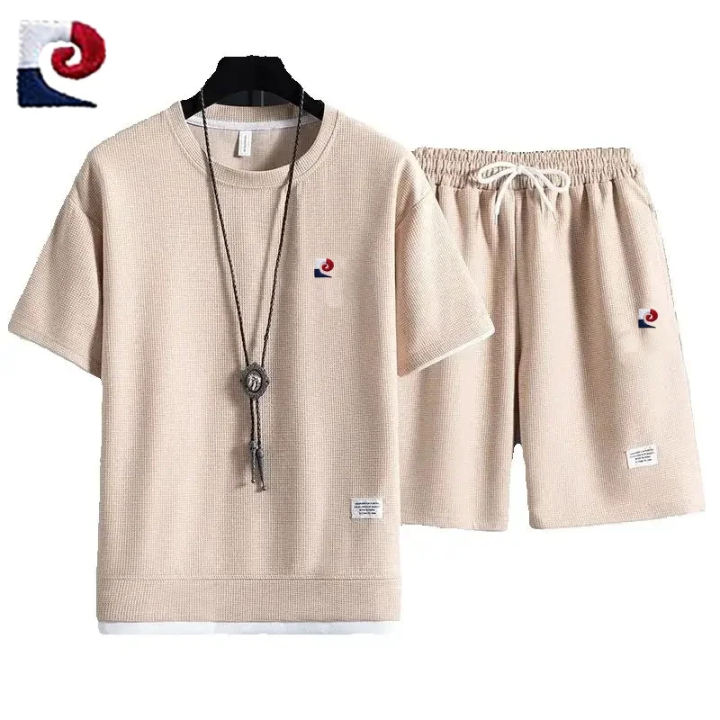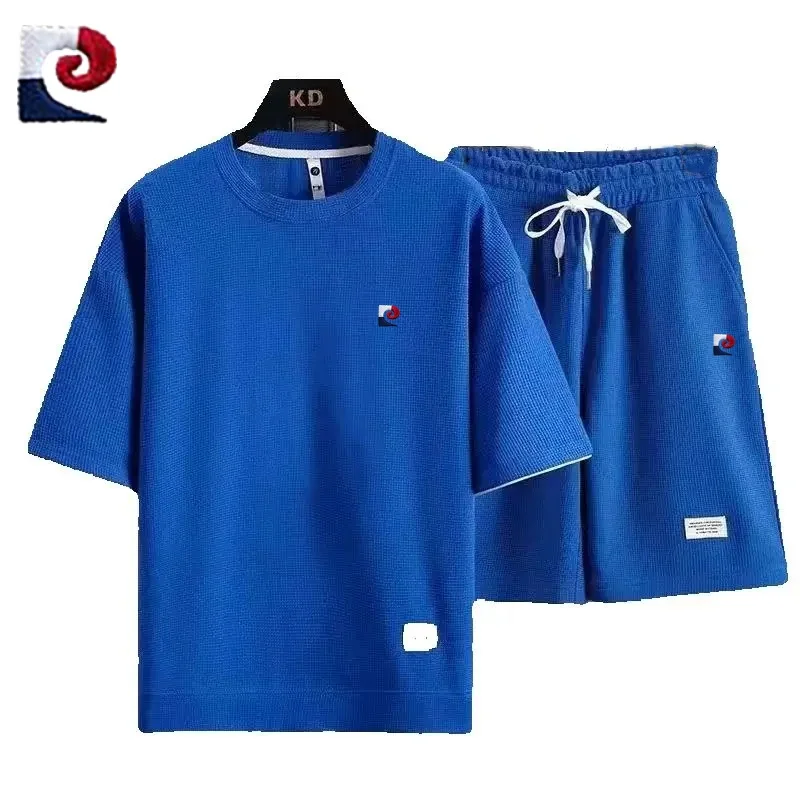 Summer New Men’s High Quality Waffle Short Sleeve Set Loose Casual Sports Couple Shorts Two Piece Set