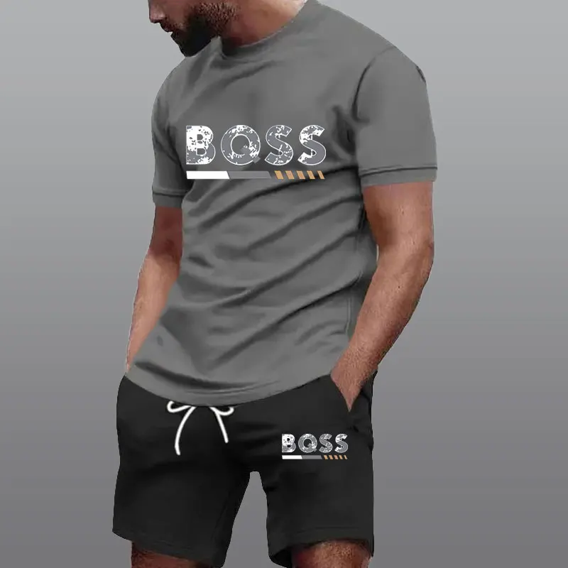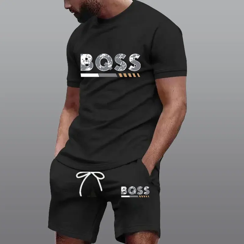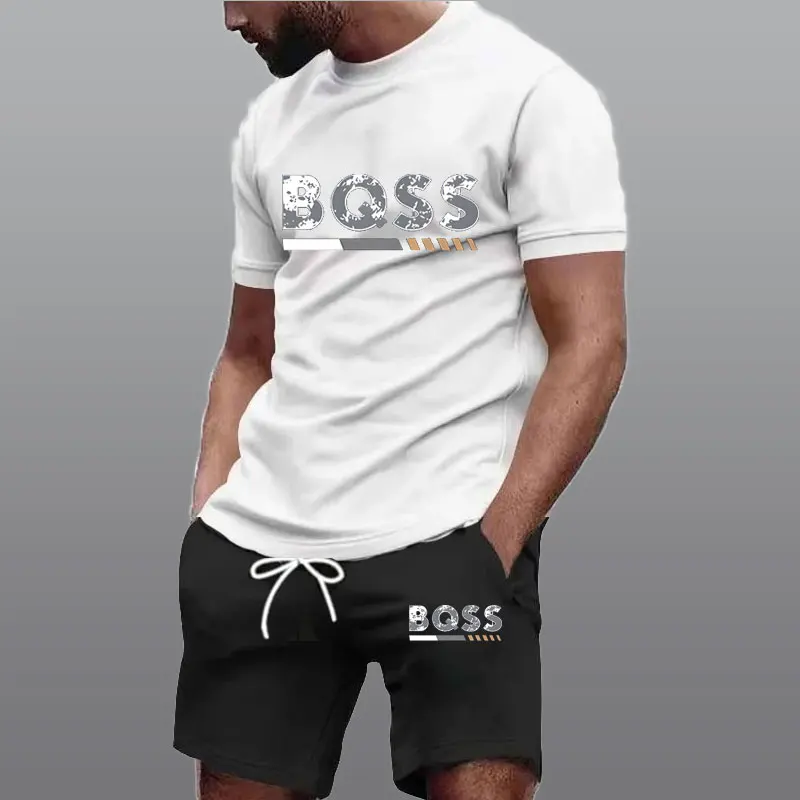Summer Sportswear Men’s Suit Fashion Two-Piece Sports Fitness Running Casual Quick Drying Short Sleeved Shorts Set Men clothing