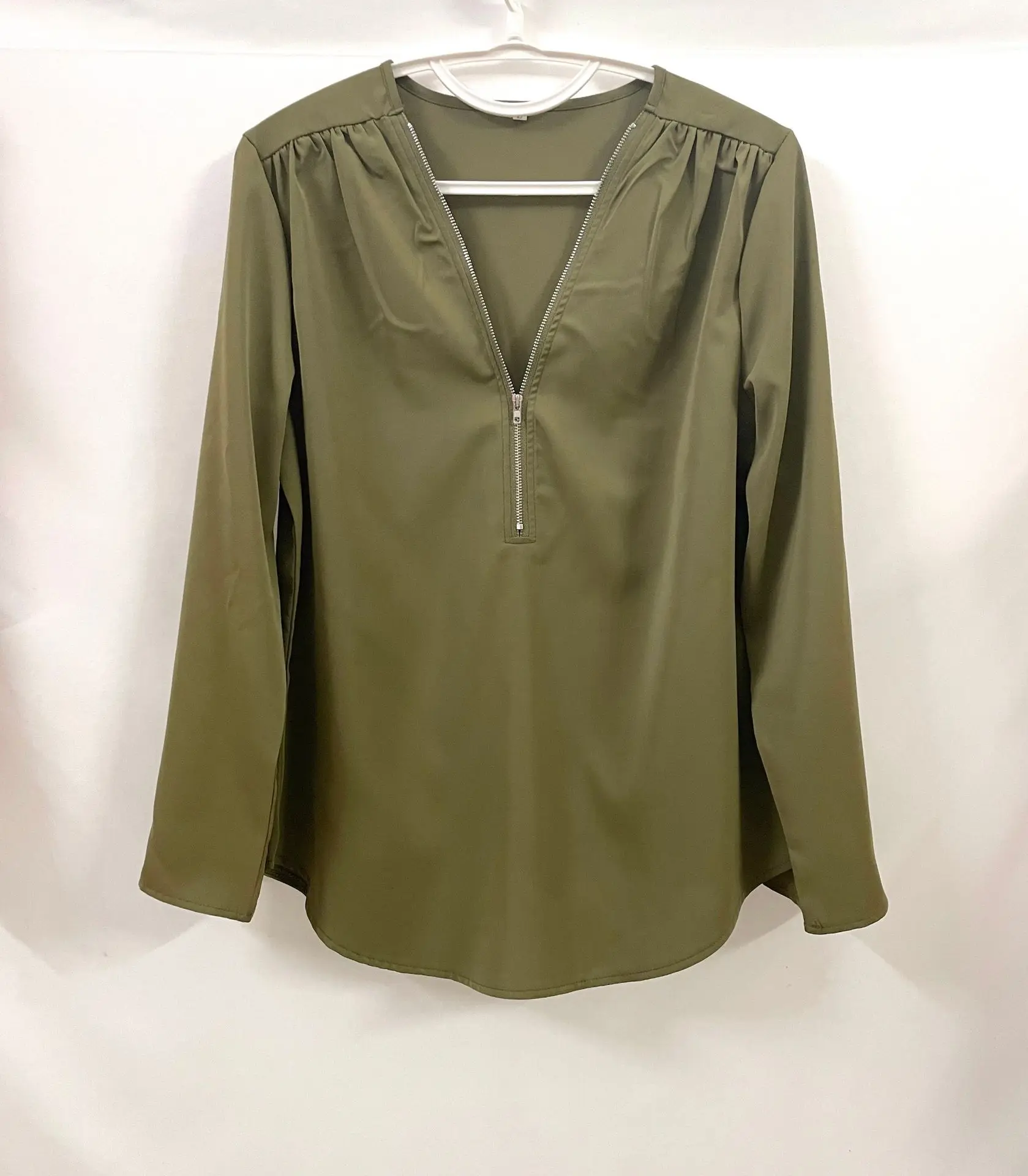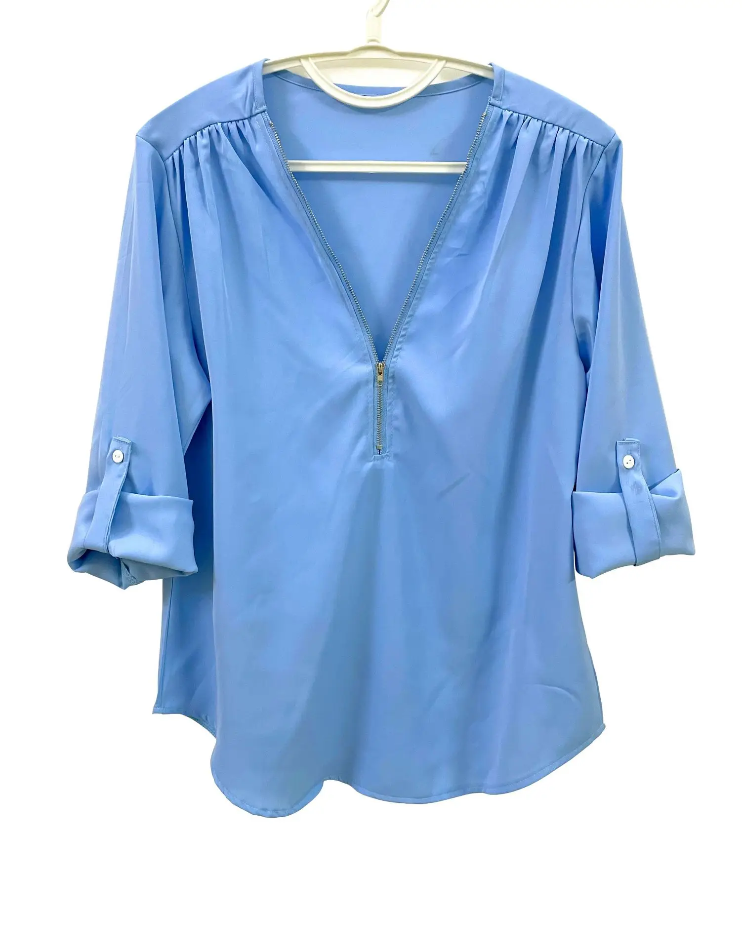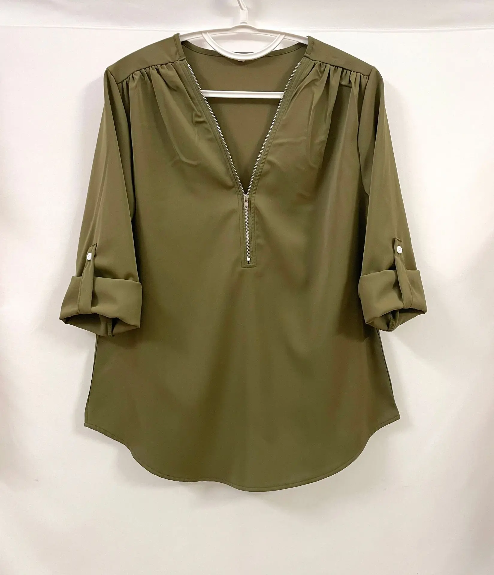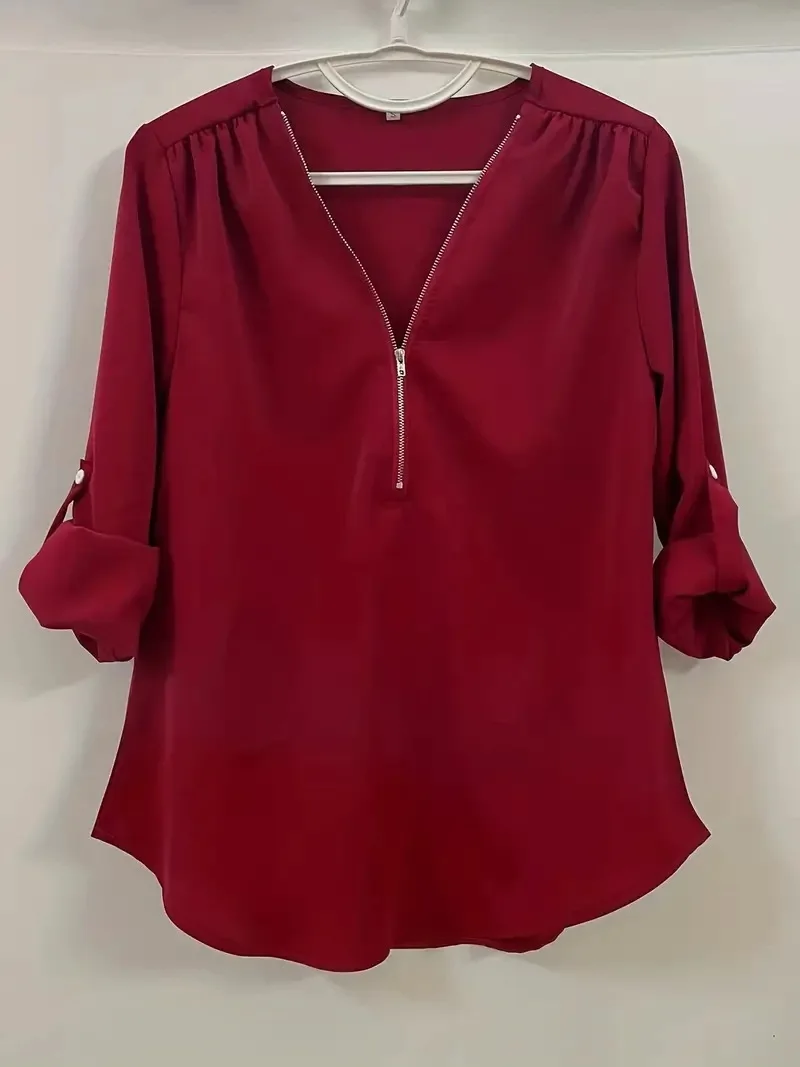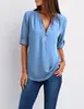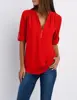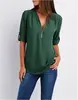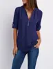 Summer Women Cool Loose Shirt Deep V Neck Chiffon Blouse Casual Ladies Tops Sexy Zipper Pullover Plus Size Long Sleeve Fashion