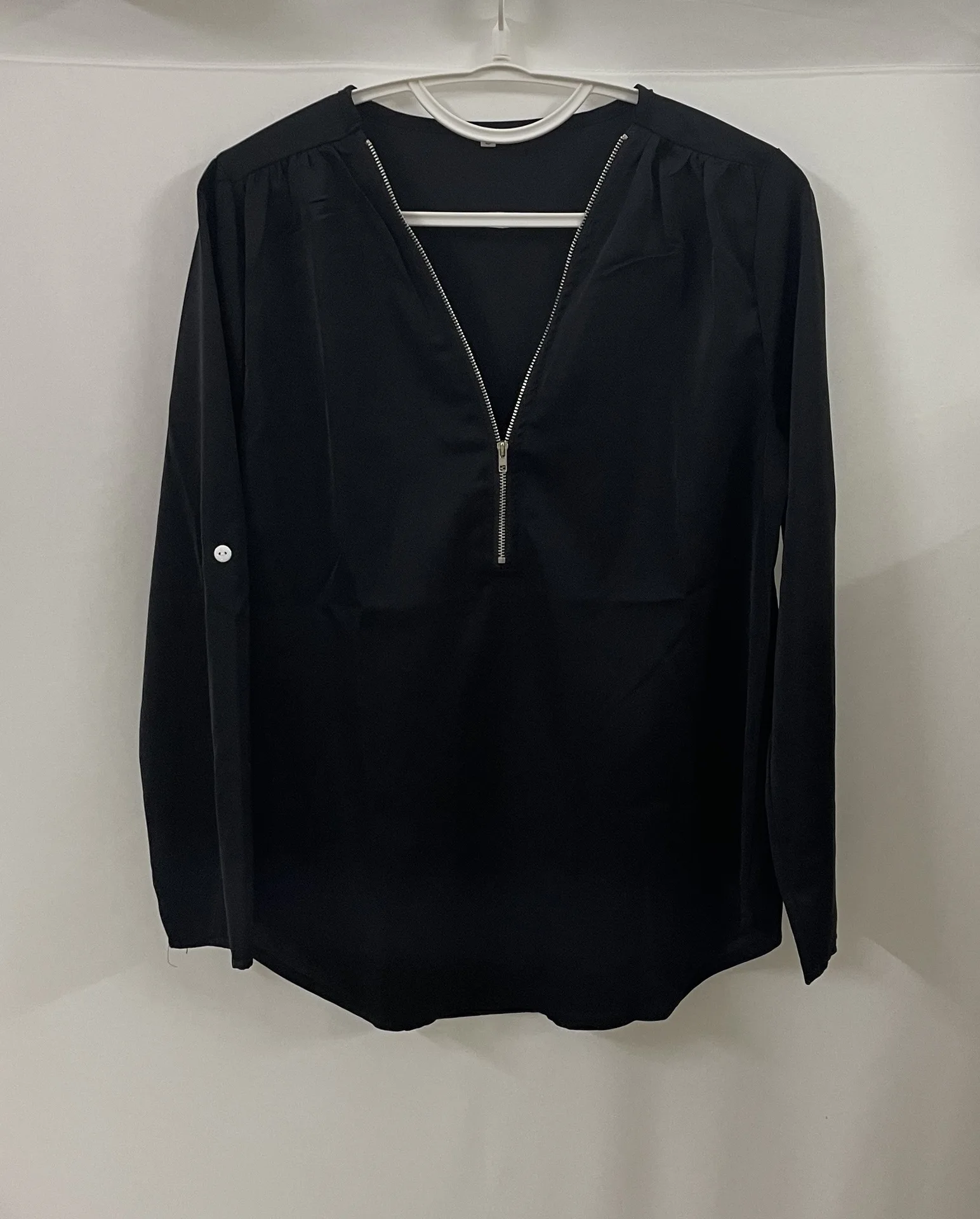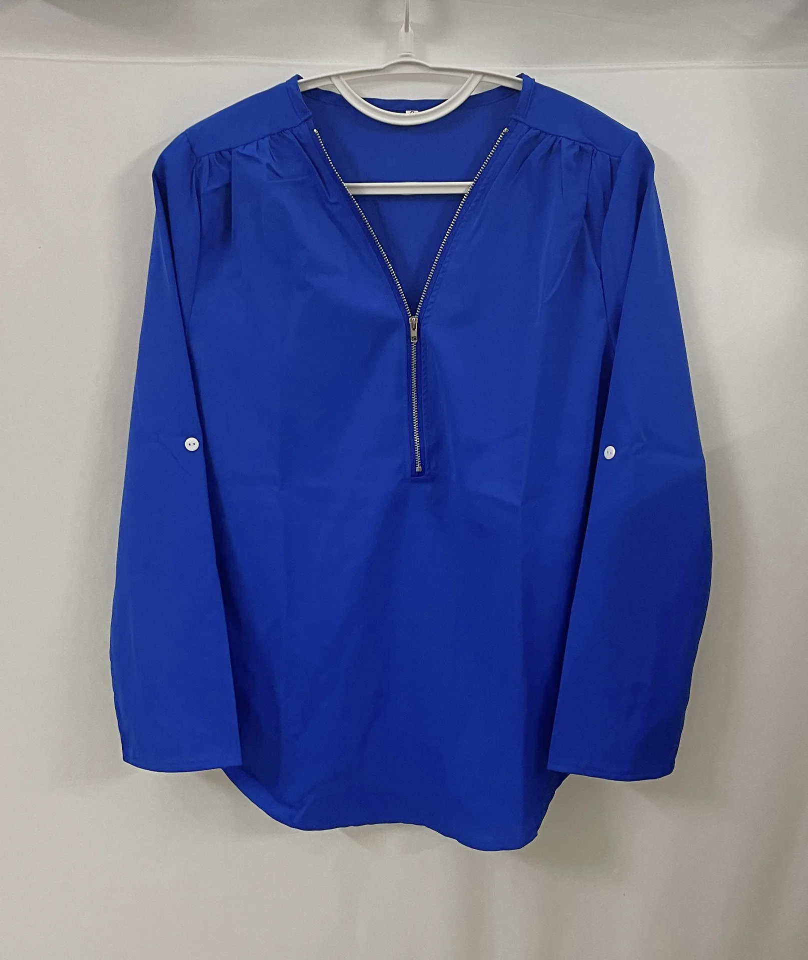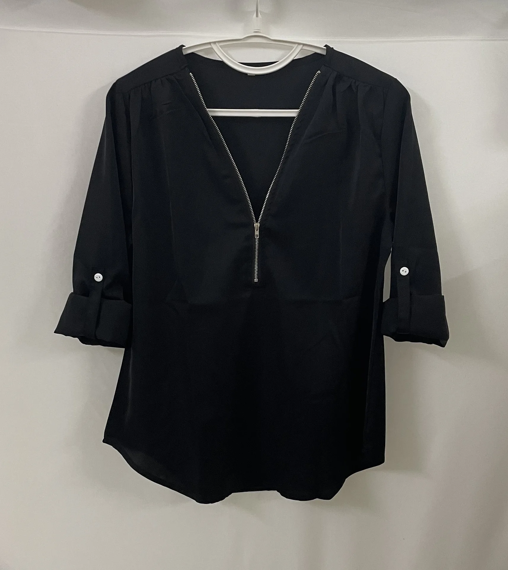 Summer Women Cool Loose Shirt Deep V Neck Chiffon Blouse Casual Ladies Tops Sexy Zipper Pullover Plus Size Long Sleeve Fashion