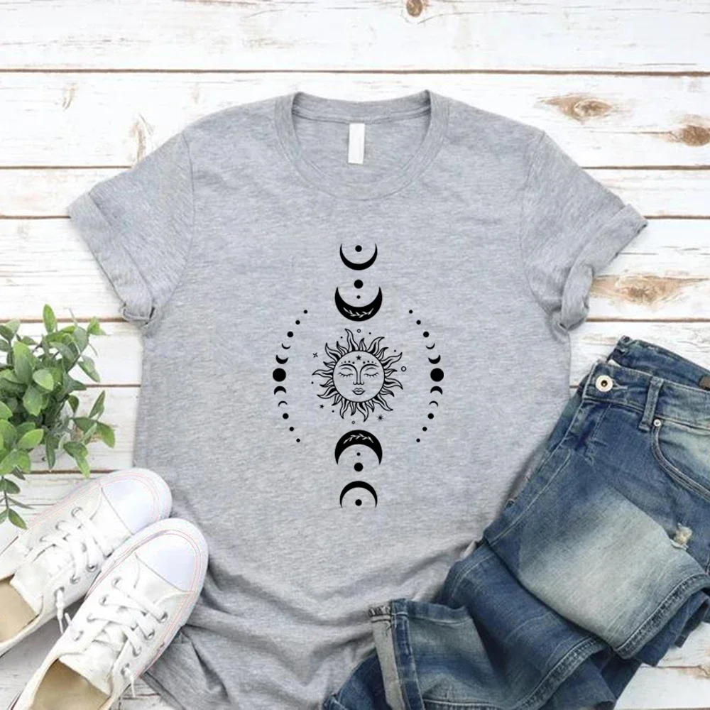 Sun and Moon Stars T-Shirt Celestial Tshirt Boho Sun Moon T-Shirts Women Short Sleeve T Shirts Retro Mystical Tee Women Clothes