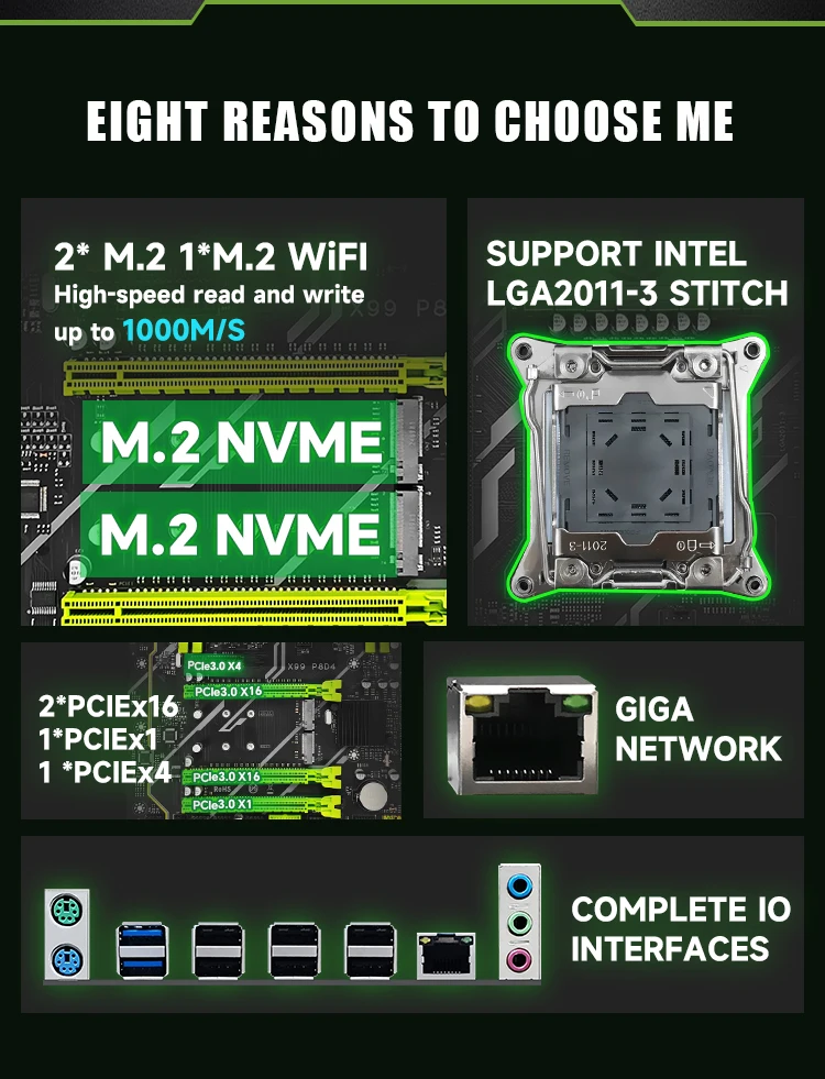 SZSJKJ Motherboard Kit X99 LGA2011-3 Four channel With Cooling Fan Support TPM2. 0 With Xeon E5 2682 CPU & DDR4 8G*2 RAM Memory
