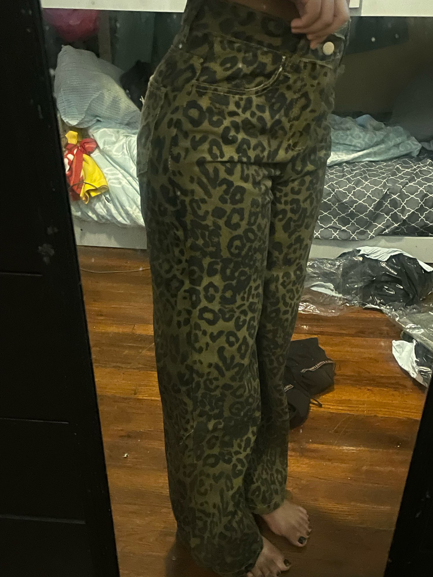 意外と豹柄薄めな気がするー。でもちょうど良かったし、丈感もなかなか好き!!使い勝手いい。生地は薄めだから寒すぎる時は注意!
