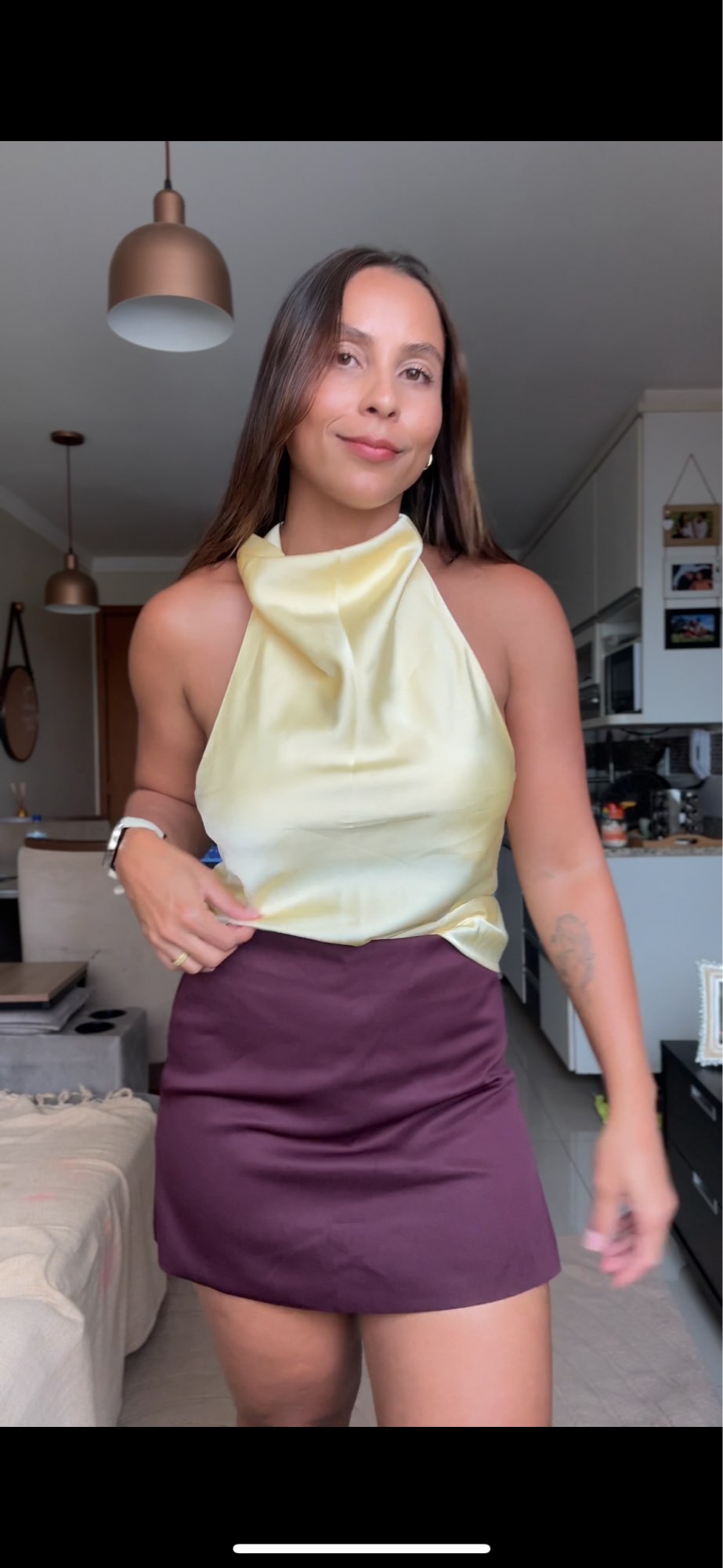 super przyjemny materiał. bardzo elegancka. idealny rozmiar. wzięłam S bo noszę S. nawet nie jest aż tak krótka jak się obawiałam.