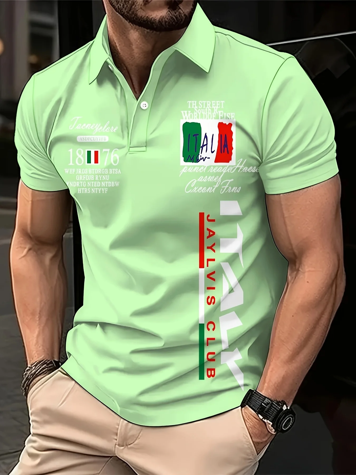 The 2025 summer new men’s POLO shirt features a casual fashionable comfortable soft and breathable 3D letter pattern print