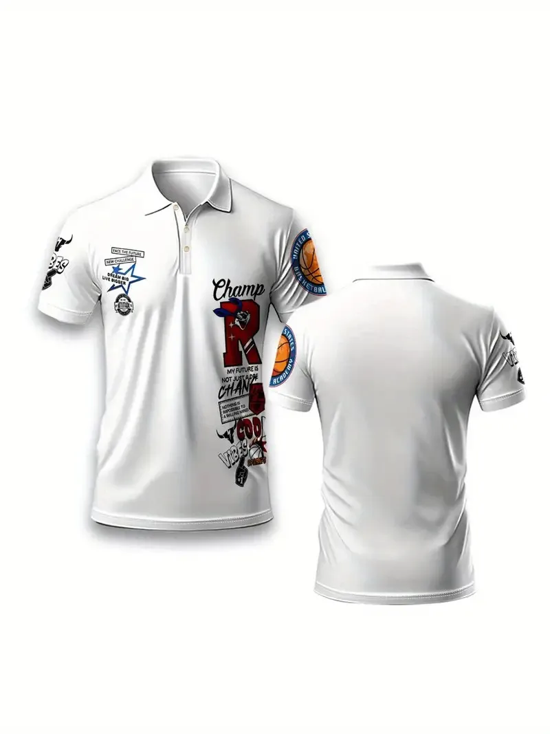 The new men’s POLO shirt for summer 2025 is a casual fashionable soft comfortable and breathable 3D letter pattern print