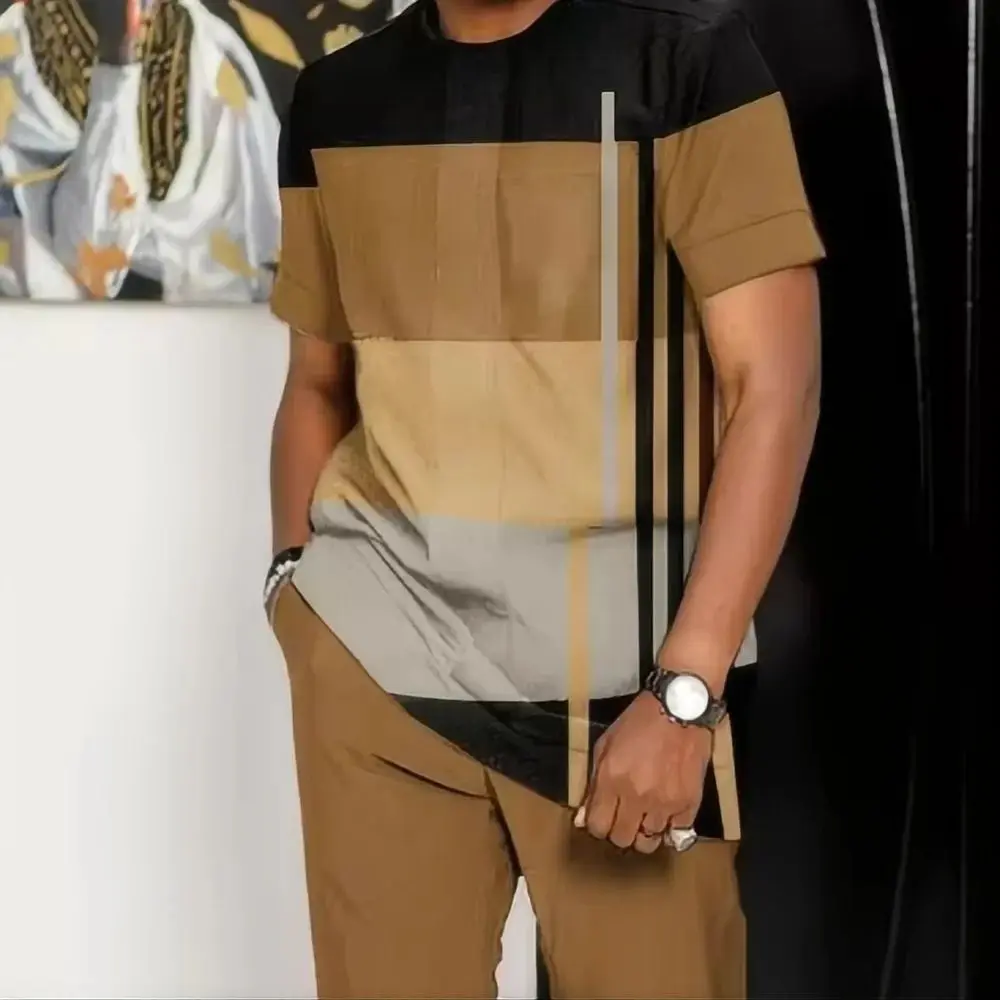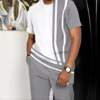 The new men’s set for Spring and Autumn 2025 features a casual fashionable comfortable and soft 3D striped pattern print