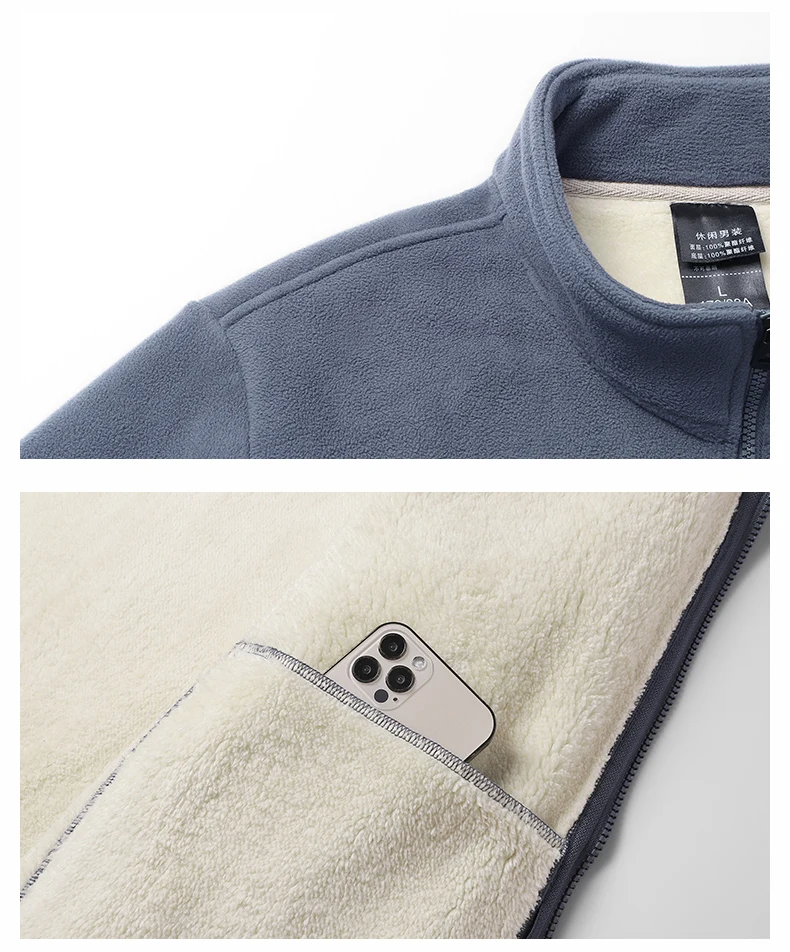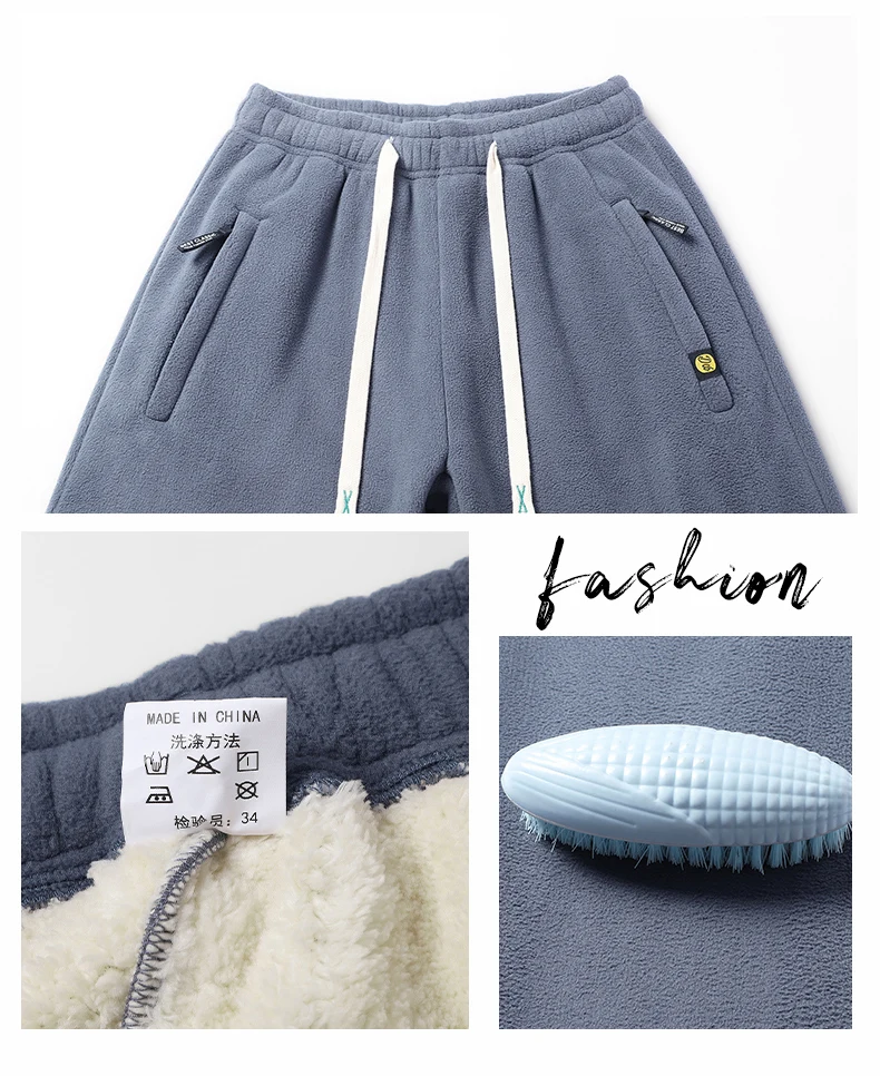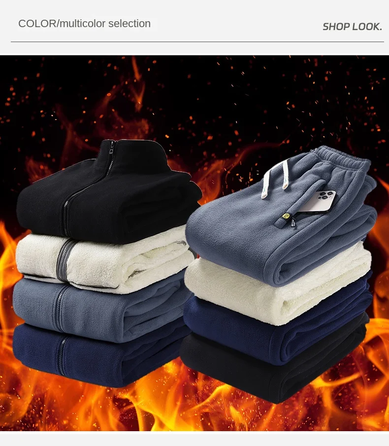 Thickened fleece fleece lamb wool jacket, top and pants two-piece set, Arctic fleece men’s stand collar warm casual pants, men’s