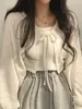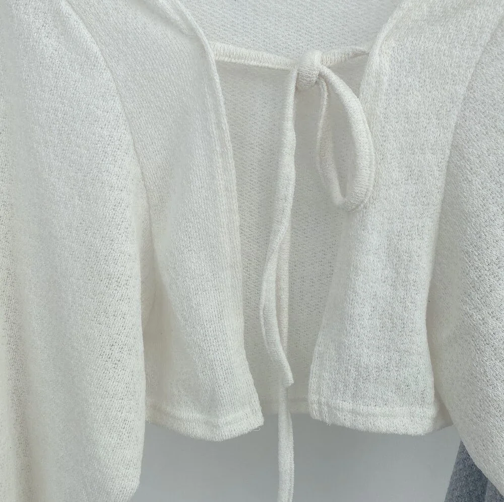 Thin White Cardigan Women Summer Sunscreen Lace-up Knitwear Tops Lady Korean Style Casual Lantern Sleeve Short Sun Protected Top