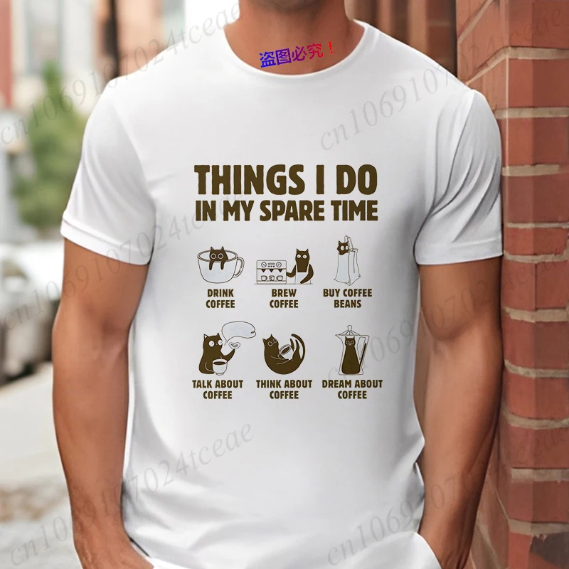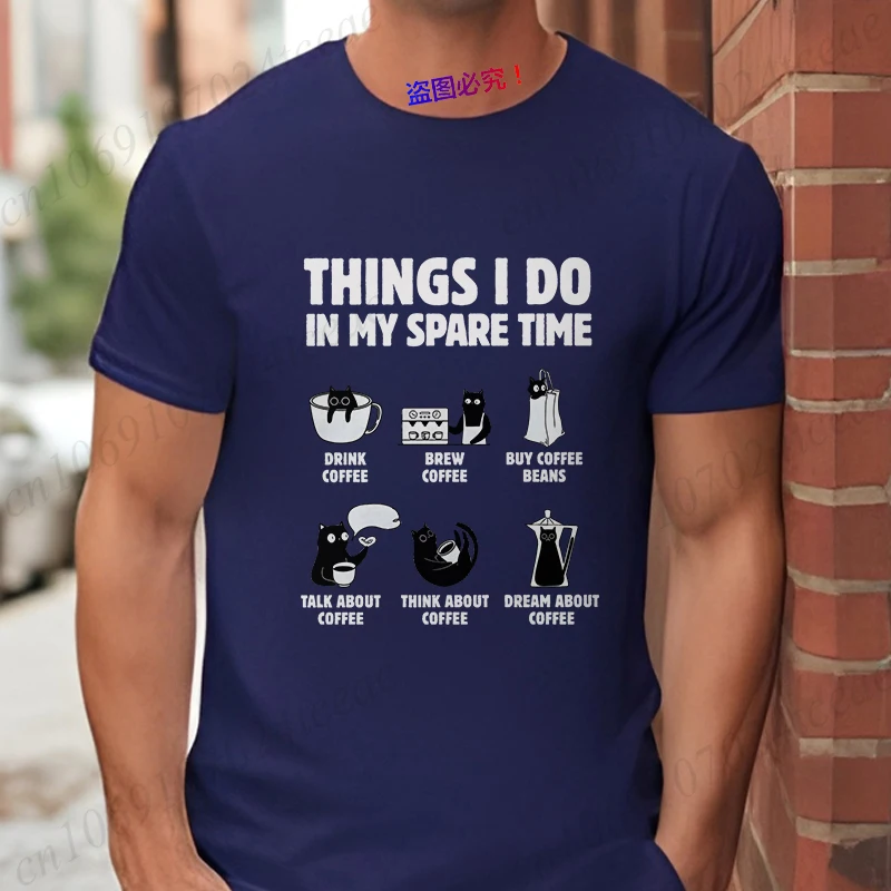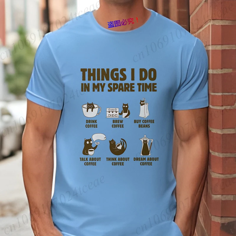 Things I Do in My Spare Time Coffee Cat T-Shirt for Men, Funny Cute Coffee Cat Graphic Tee, Short Sleeve O Neck Male Clothing