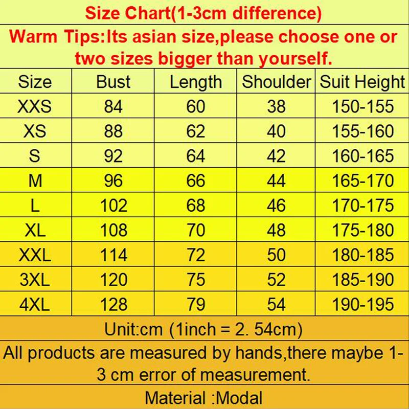 3XL:Shoulder:52cm; Bust:120cm; Length:75cm; Height:185-190cm;