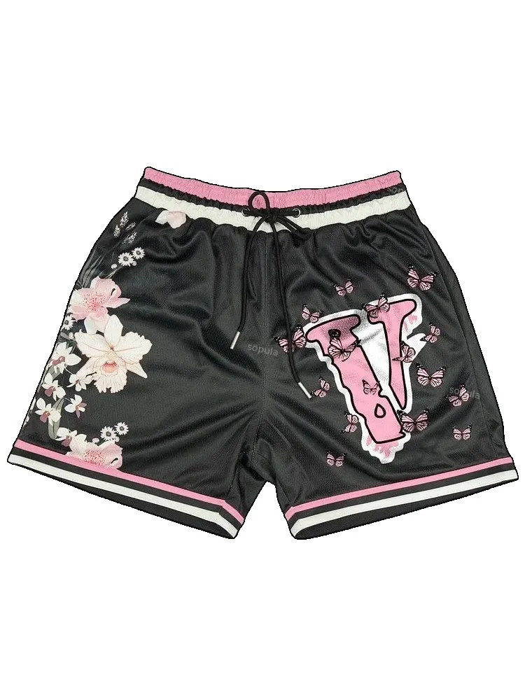 Tide Brand Men’s Flower Art Sports Shorts Breathable Quick-Dry Loose Fit for Basketball Training Gym Fashion