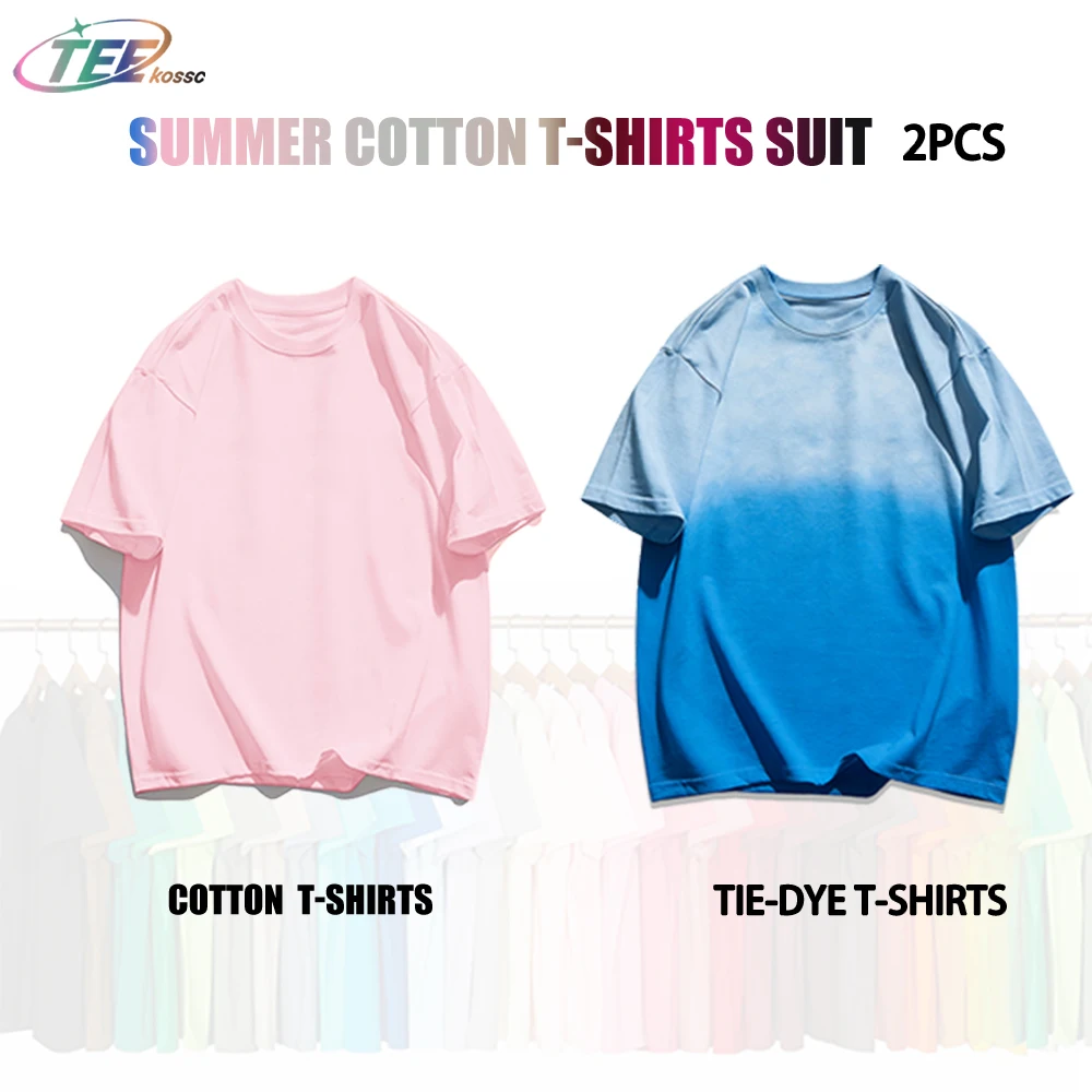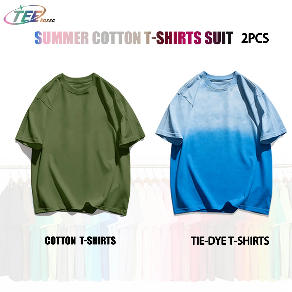 Tie-Dye & Basics tee Men Outdoor T-Shirt Summer Casual 2pcs T Shirts All-Match Crewneck Tops Unisex Oversized Soft Streetwear