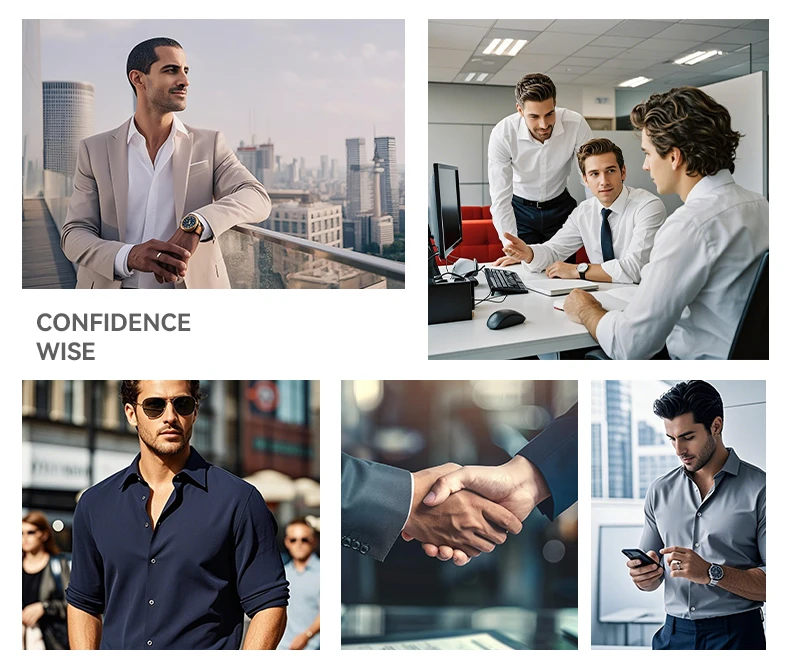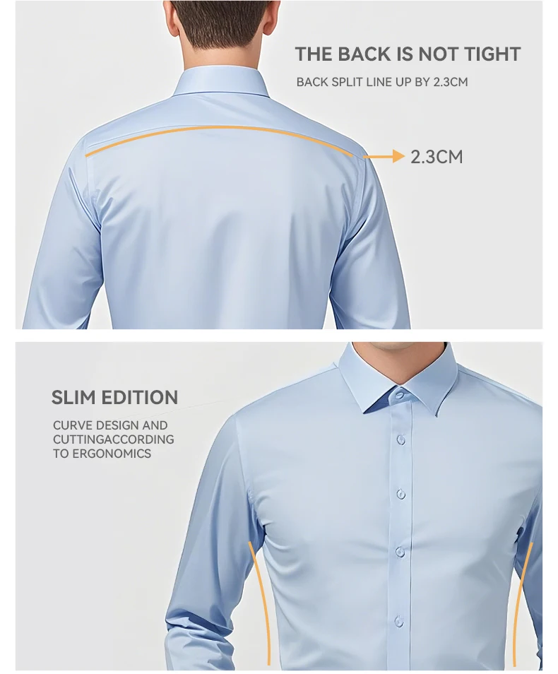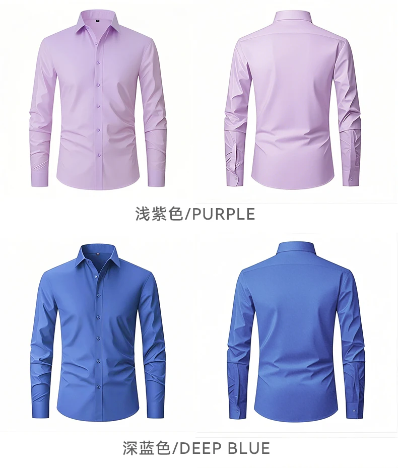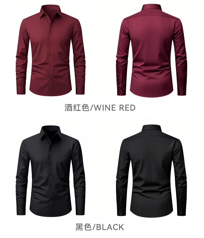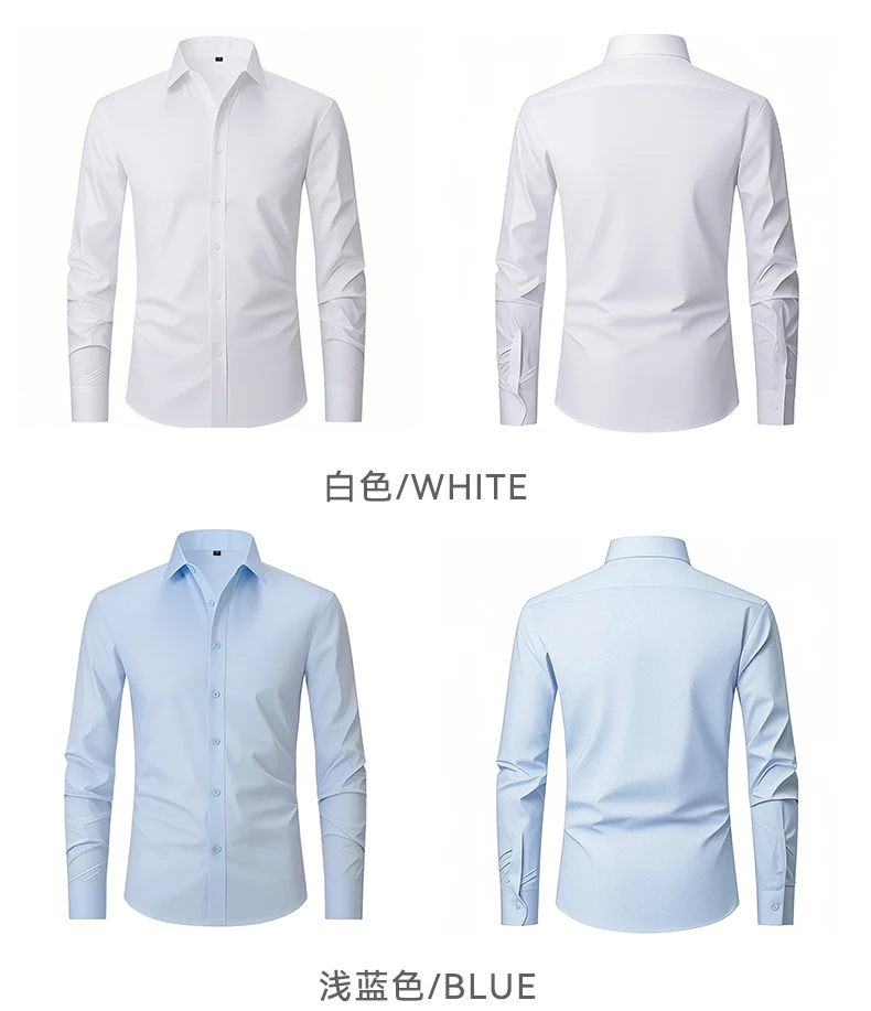 US EU Size XXL Mens Business Shirt Long Sleeve Solid Color Spring Autumn Social Formal Wrinkle Free Slim Fit Male Stretch Blouse