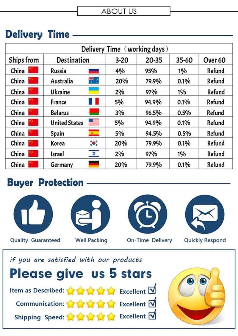 *You can submit refund requests within 15 days after the guaranteed period for delivery (45 days) has expired. You can do it by sending a message on Contact Us page