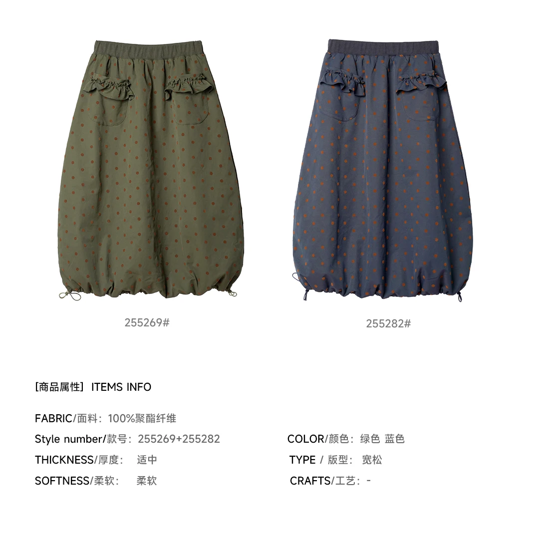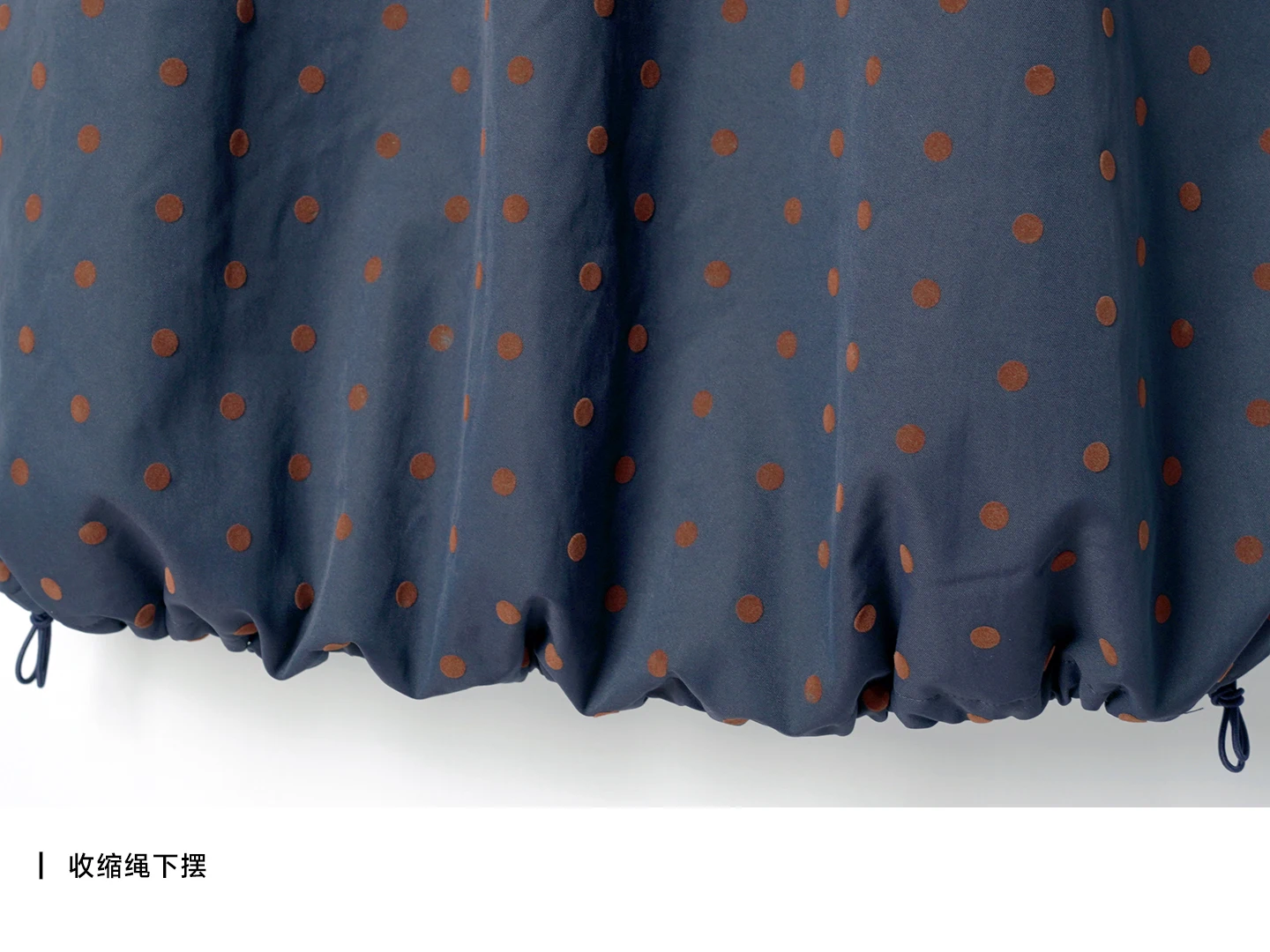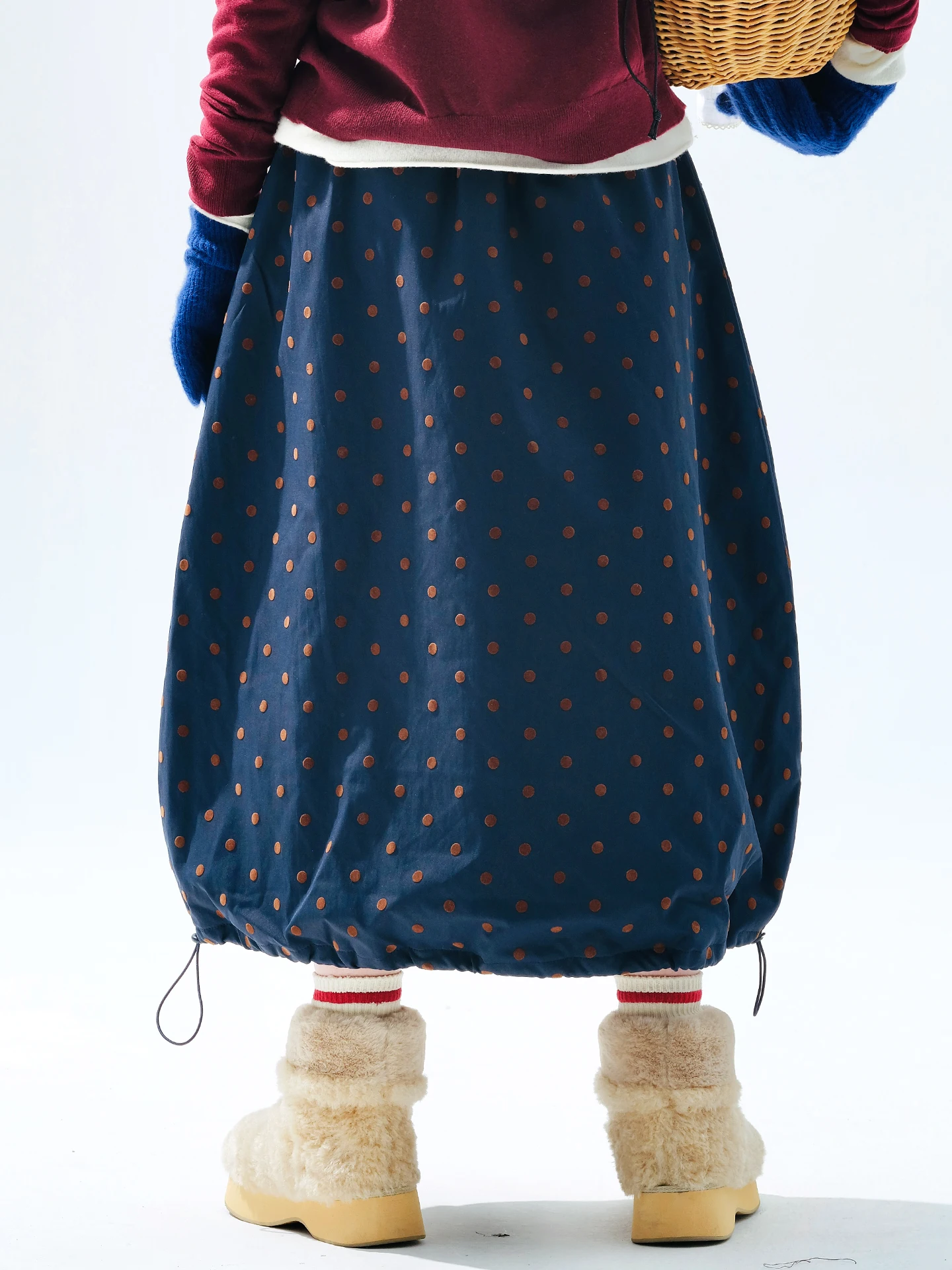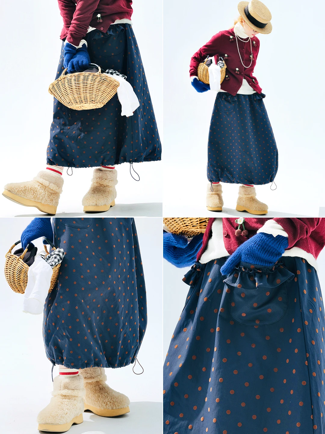 Velvet Polka Dot Lantern Skirt, Elastic – Waist Pocket Design, Retro Commute, Artistic & Chic 255282