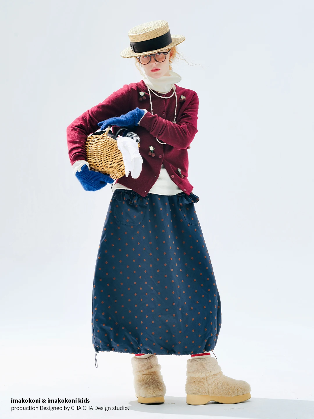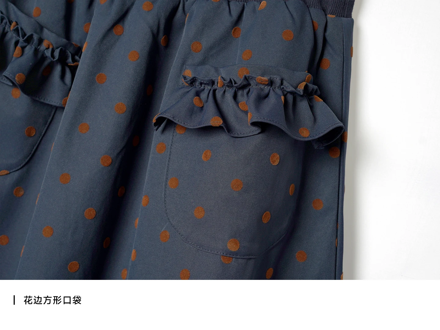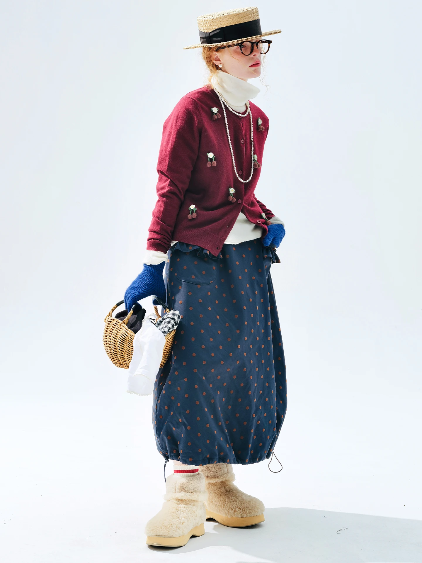 Velvet Polka Dot Lantern Skirt, Elastic – Waist Pocket Design, Retro Commute, Artistic & Chic 255282