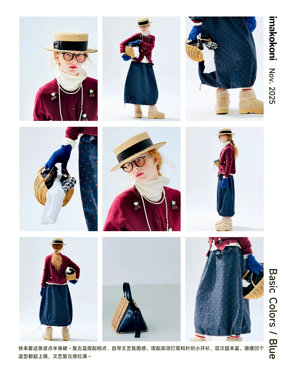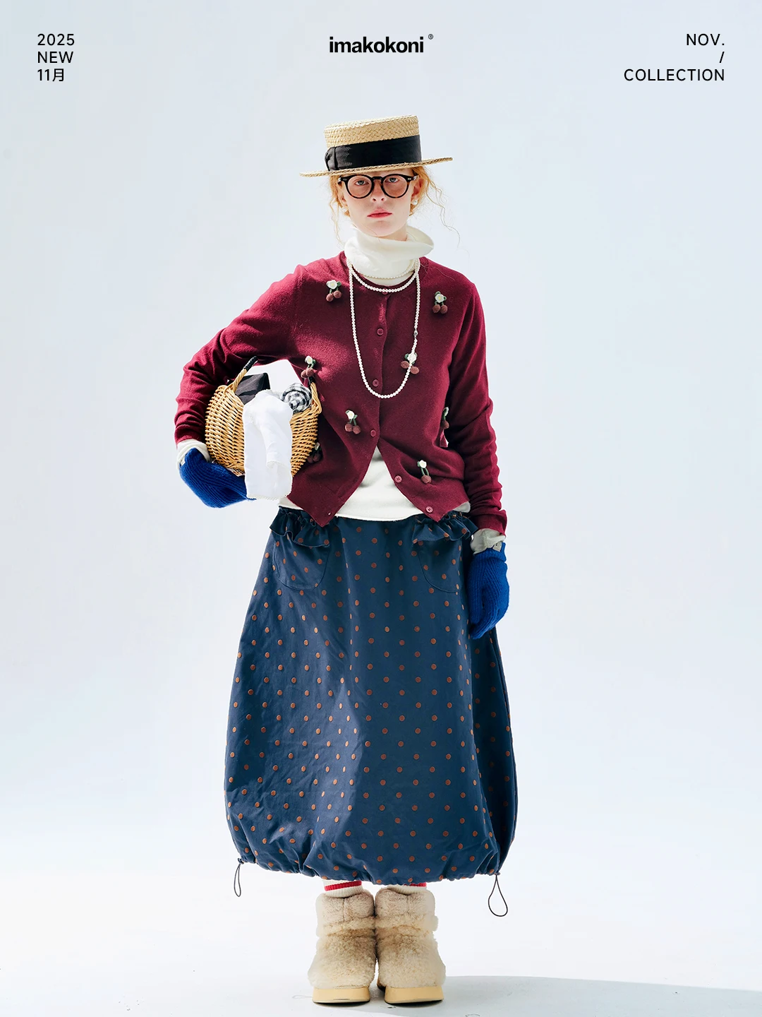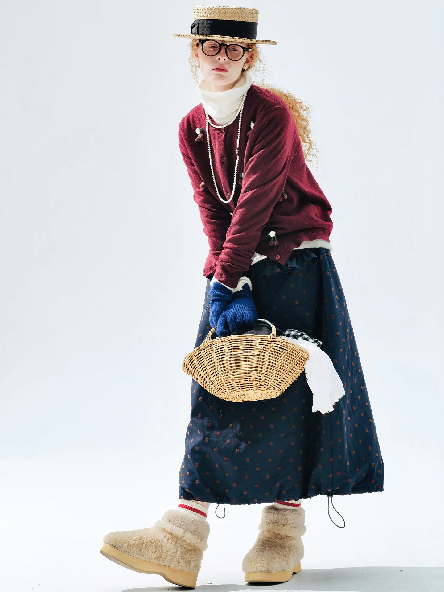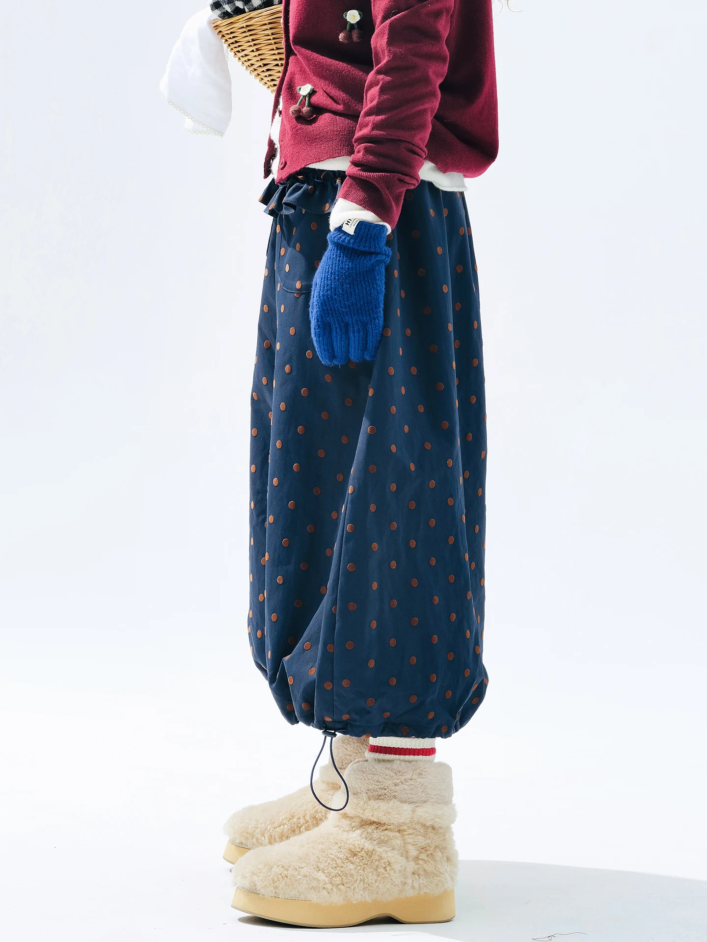 Velvet Polka Dot Lantern Skirt, Elastic – Waist Pocket Design, Retro Commute, Artistic & Chic 255282