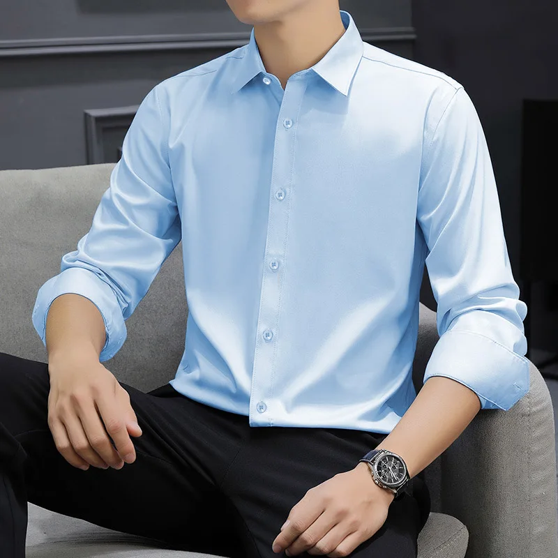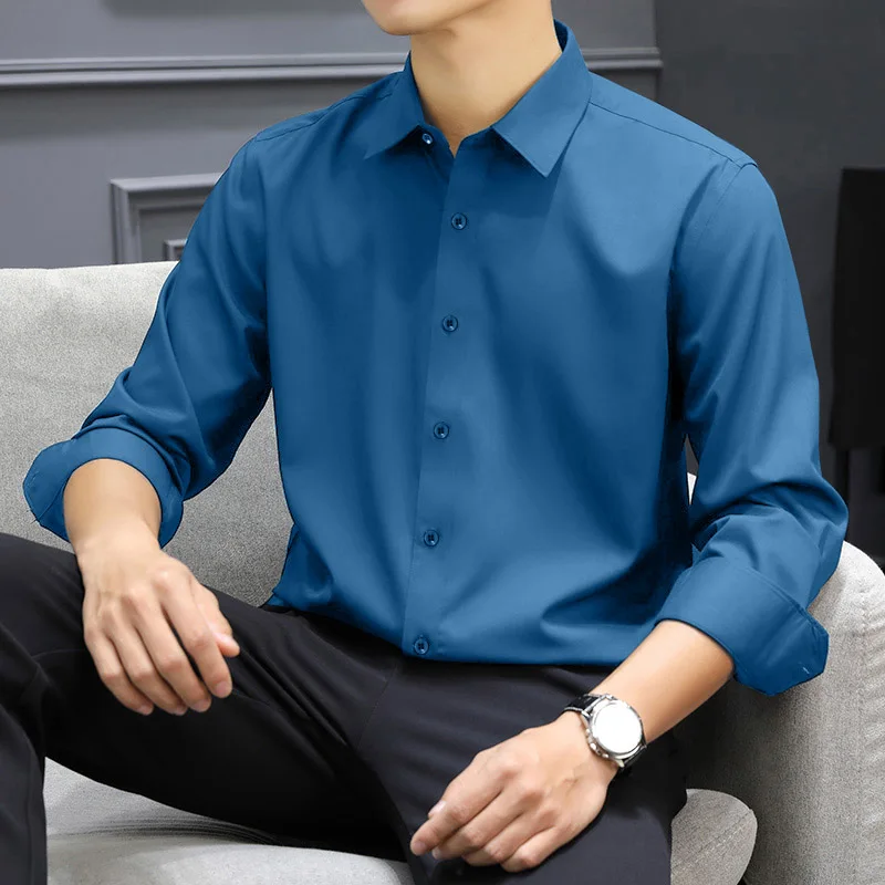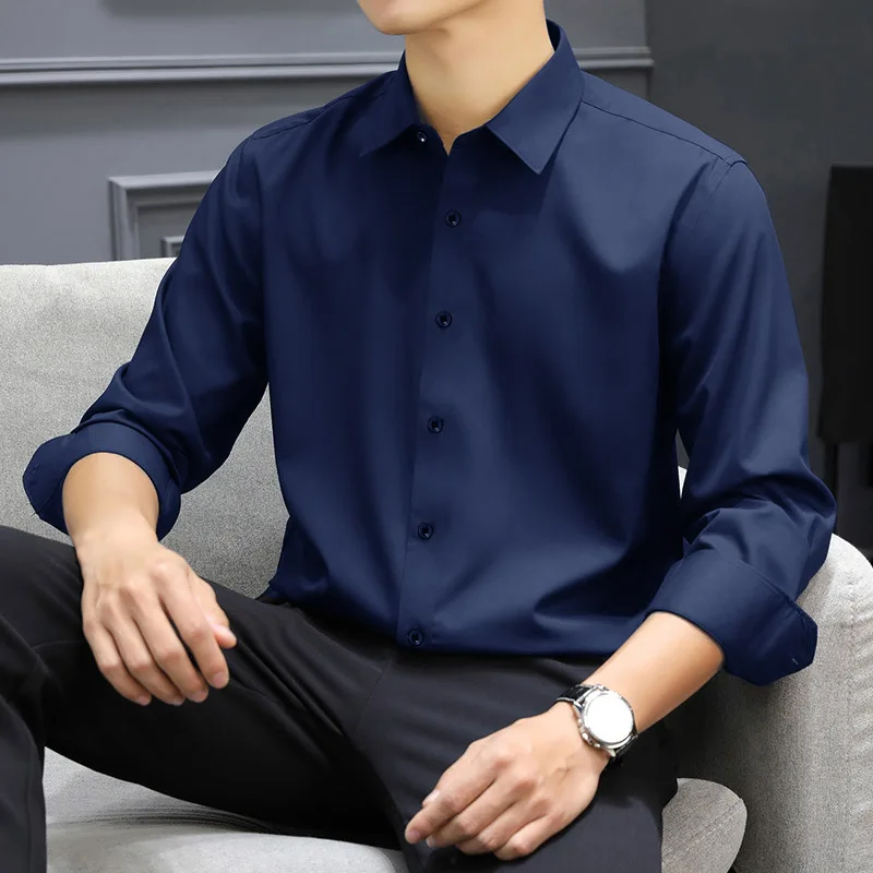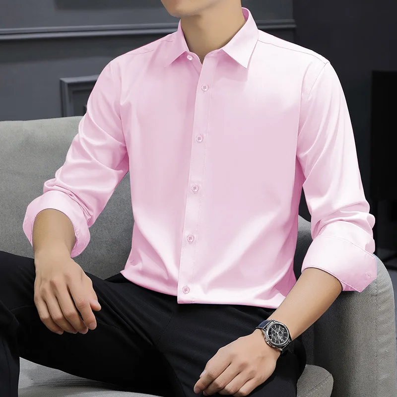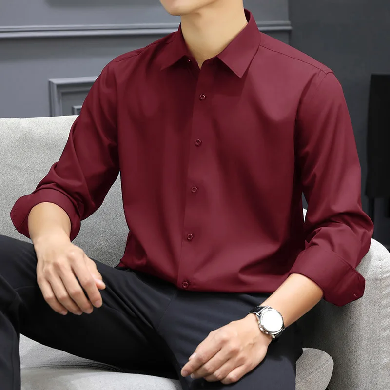 Versatile Men’s Solid 2026 Long Sleeve Dress Shirt Casual Formal Dual-Use Button Up Shirt
