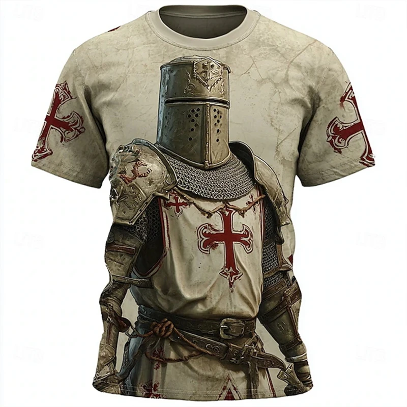 Vintage Men’s T-Shirt 3d Printing Knights Templar Short-Sleeved T-Shirt Religious Street Wear Casual Sailing Men’s Summer Tees