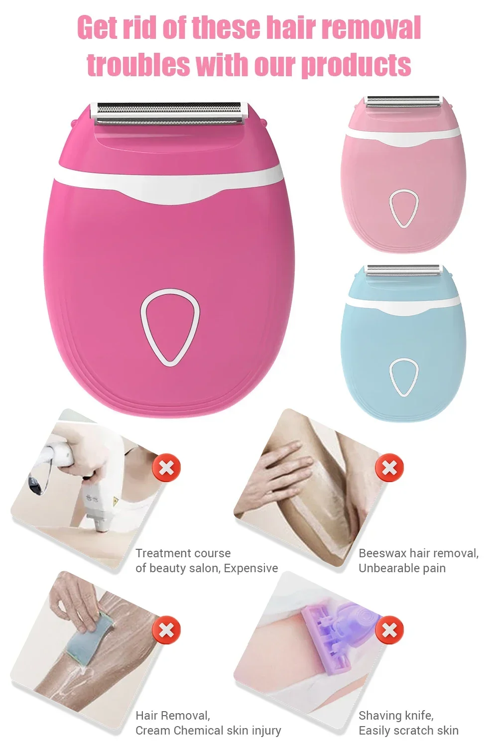 Women Hair Removal Machine Trimmer Wet/Dry Use with Detachable Head for Smooth Bikini, Legs, Underarm, and Public Hair Trimmin