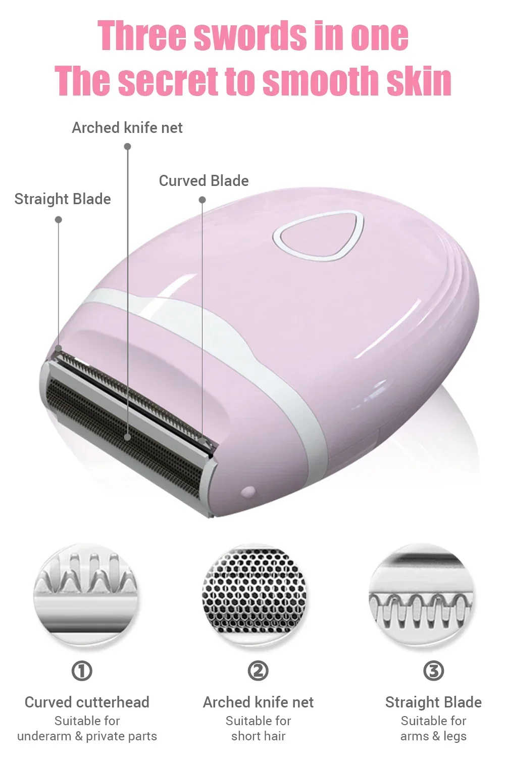wet smooth flawless anal hair pubic hair leg hair chest hair armpit hair three knives in one skin friendly knife net no quick clean private knife head waterproof dry and wet knife head waterproof design body washable Easy to clean smooth mesh dry battery for sensitive muscles three knives in one compact body for the whole body dust cover curved blade arched blade net straight blade curved blade head for underarm, private The arched knife net is suitable for short hands and straight blades for arms and legs hair removal. It is necessary to be clean and refreshing. See the intelligent chip high-speed motor to give you a more comfortable experience