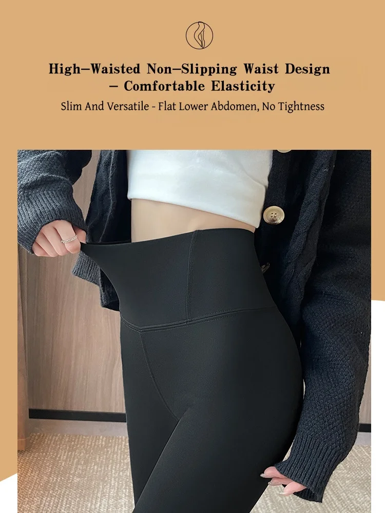 Women High Waisted Slim-Fit Tapered Leggings Autumn Winter Wear Sport Figure-Flattering Butt-Lifting Yoga Fleece Base Layer Warm