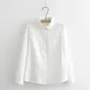 women lace white shirts summer spring long-sleeve ruffled 100% cotton slim soft blouse tops