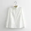 Women Lace White Shirts Summer Spring Long-sleeve Ruffled 100% Cotton Slim Soft Blouse Tops 0.15 Kg