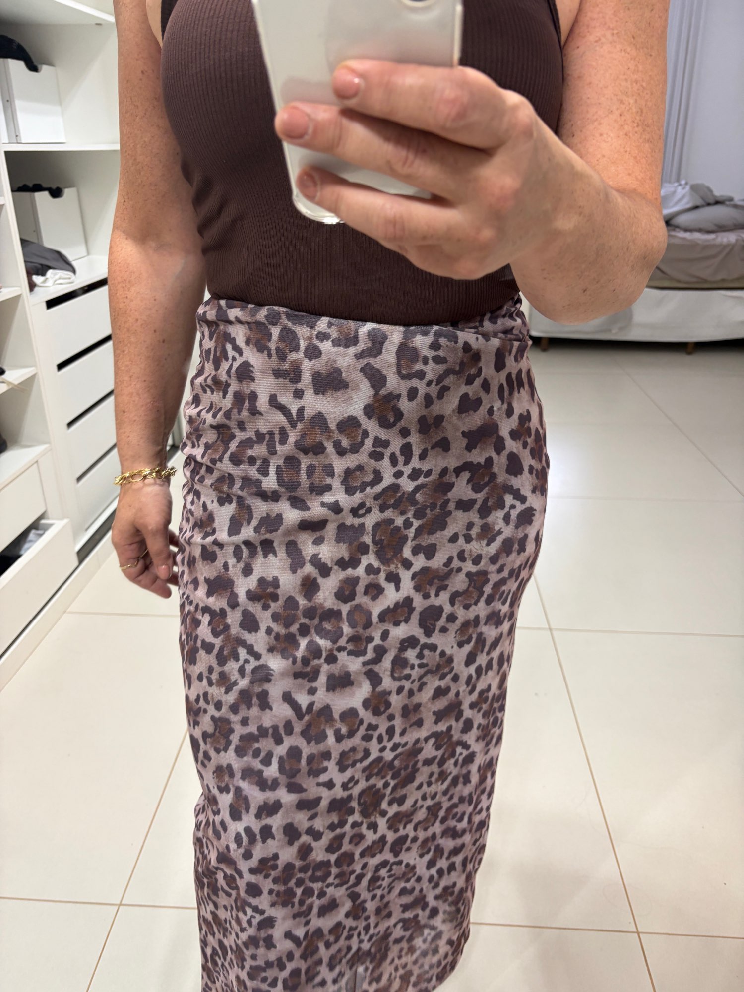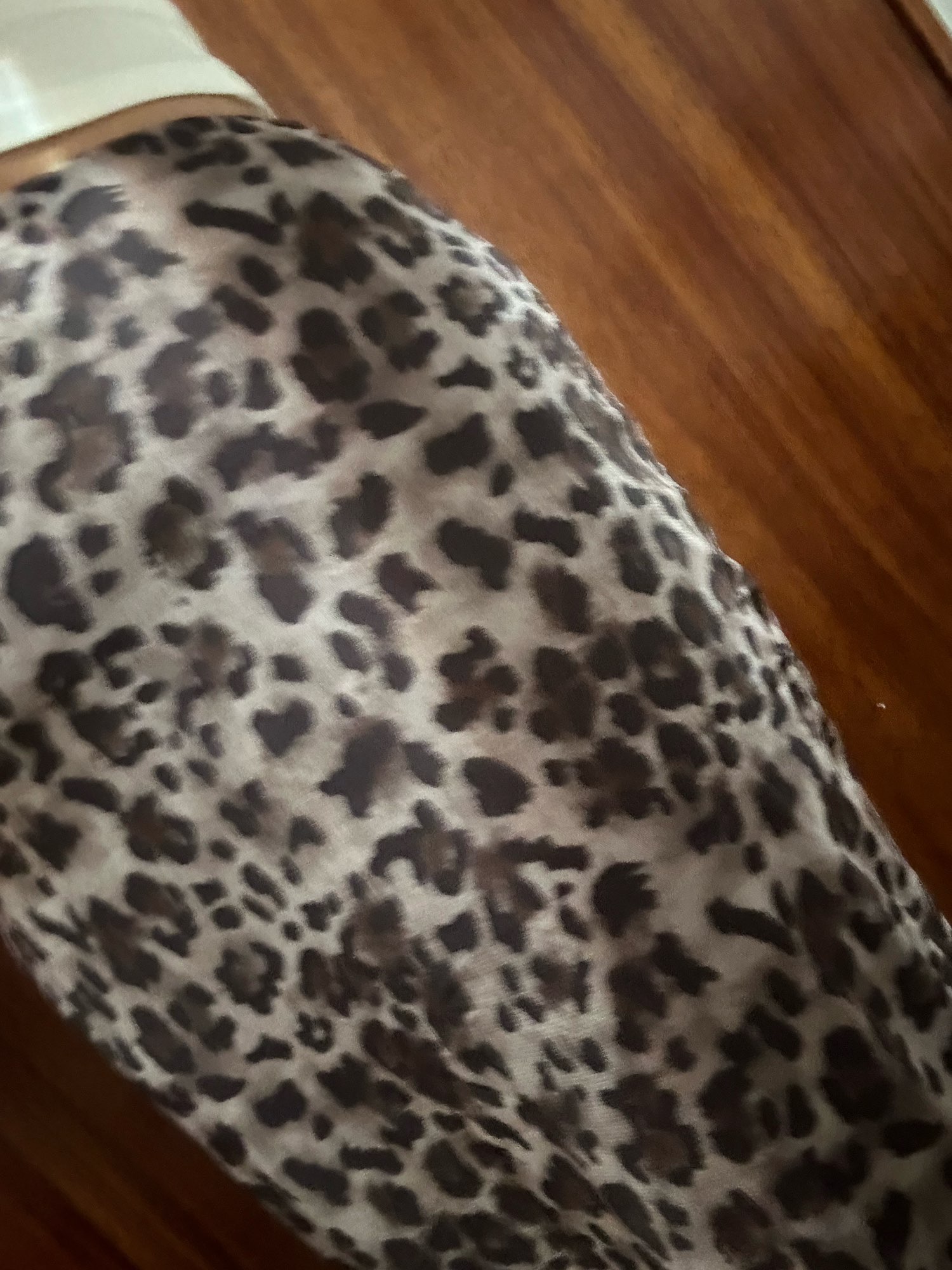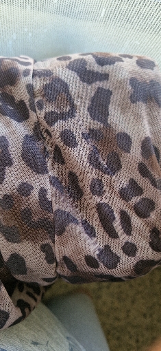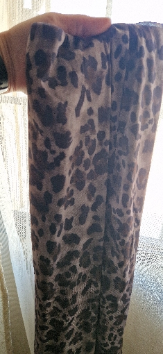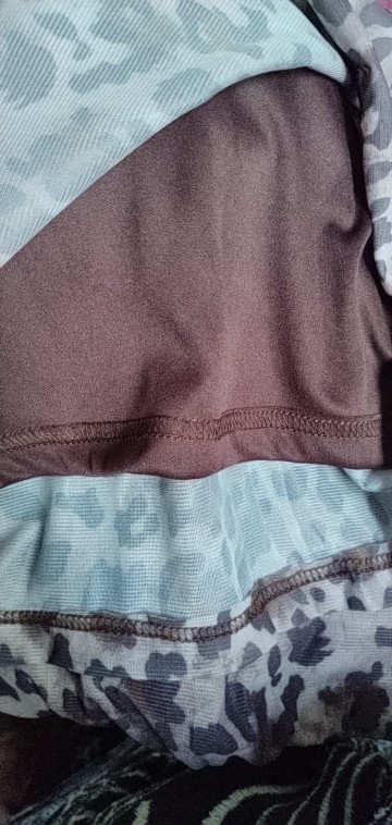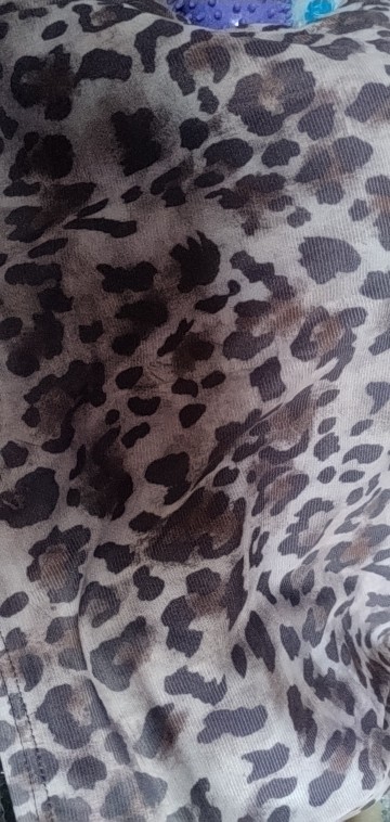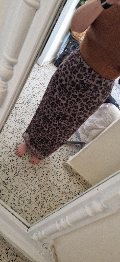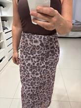No es la misma que en las fotos, el estampado no es exactamente ese, hay muchas fotos en los comentarios. Aún así es bonita y sienta genial. Tenía miedo de que el tejido clareara al estirarse pero no. La cinturilla lleva un elástico estrecho que aprieta y se marca un poco.