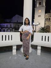 Yo la pedí en talla M porque no quería que me quedara demasiado ajustada, y efectivamente me quedó muy bien, no es demasiado larga porque yo mido 1,53 y me quedo a la altura justa, es fresca, cómoda y bonita. Para ser talla M, no es grande y se ajusta bien a mi cuerpo. Pienso que ha sido una buena compra