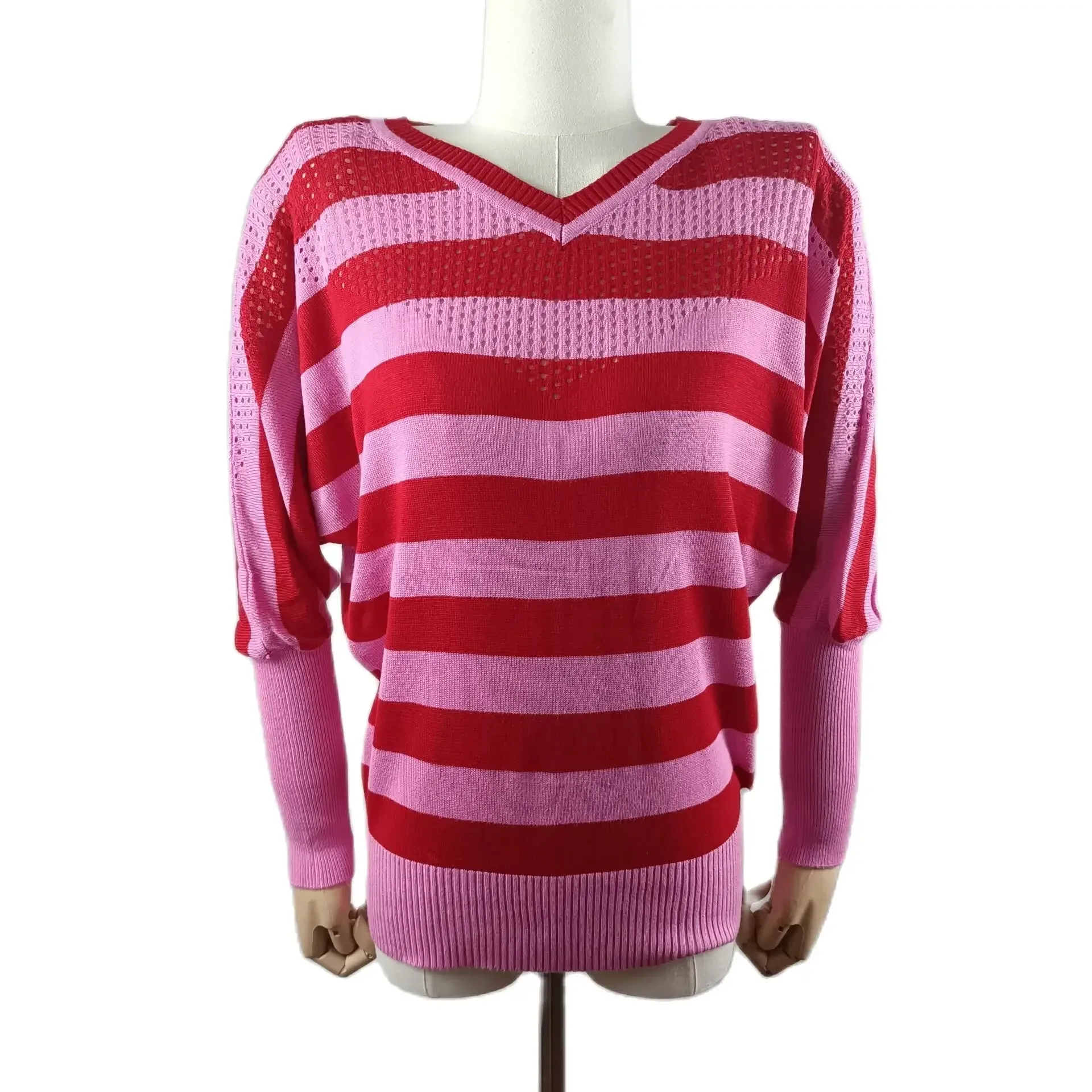 Women Plus Size Summer Sweater Batwing Sleeve Striped Shirt for Women Loose Streetwear Tops Spring Autumn 2025
