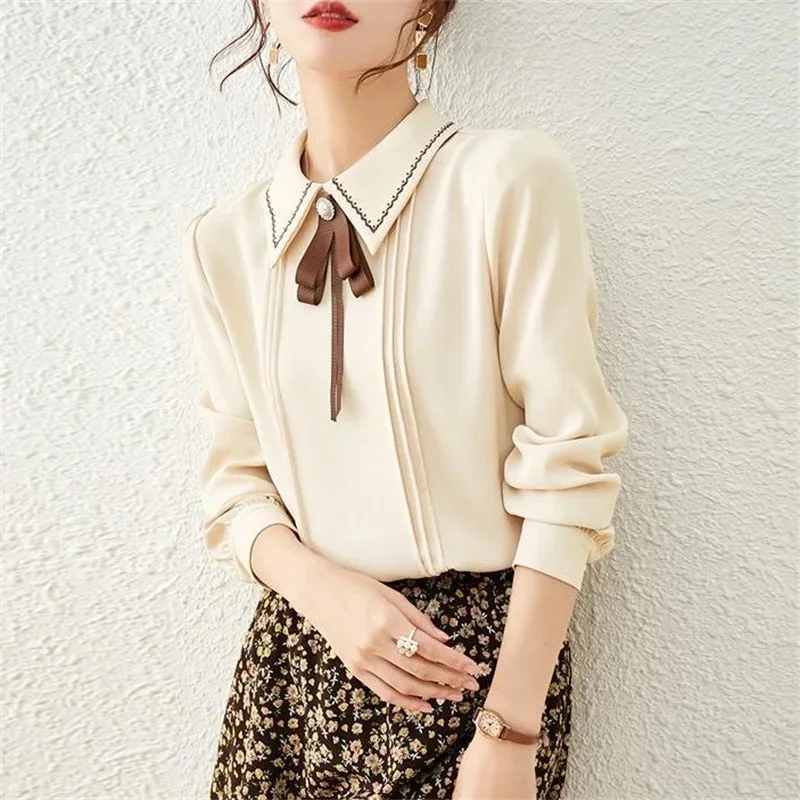 Women Spring Autumn Style Blouses Shirts Lady Casual Long Sleeve Peter Pan Collar Blusas Tops
