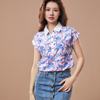 Women Spring Summer Style Chiffon Blouses Shirt Lady Casual Short Sleeve Turn-down Collar Printed Casual Loose Tops DF3548