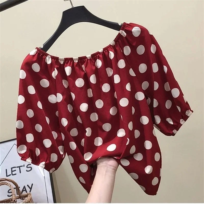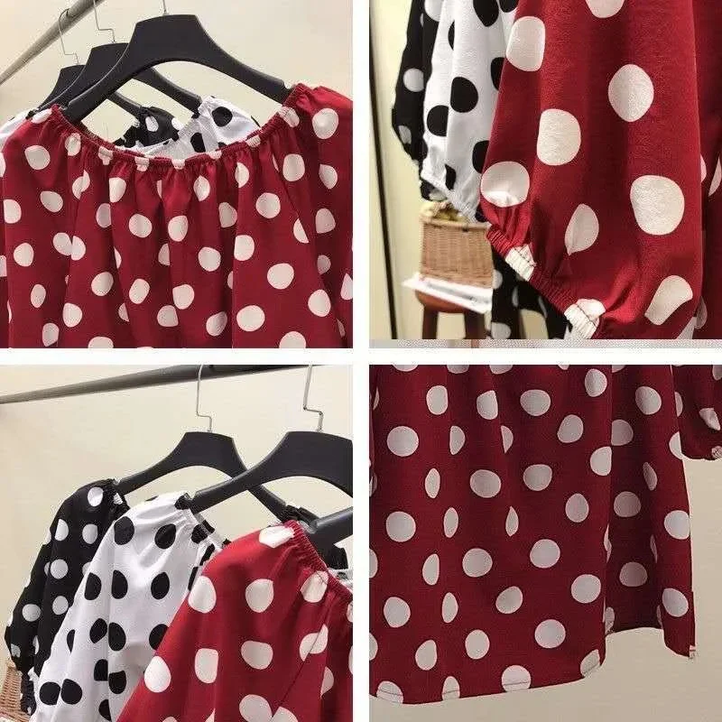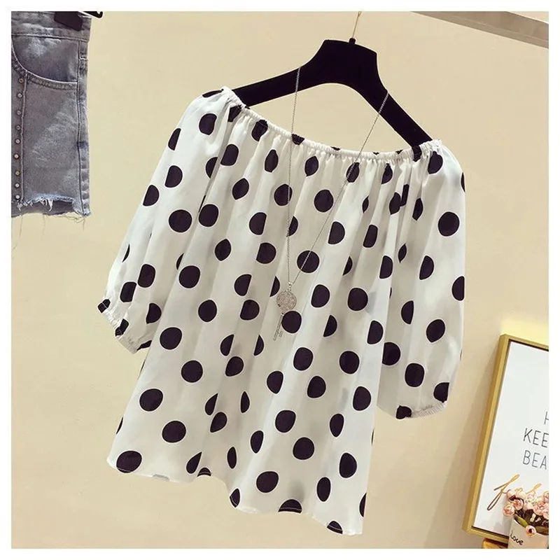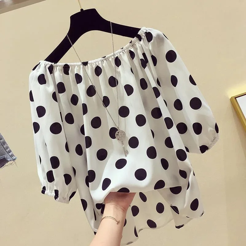 Women Spring Summer Style Loose Blouses Shirts Lady Casual Slash Neck Polka Dot Printed Blusas Tops