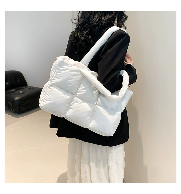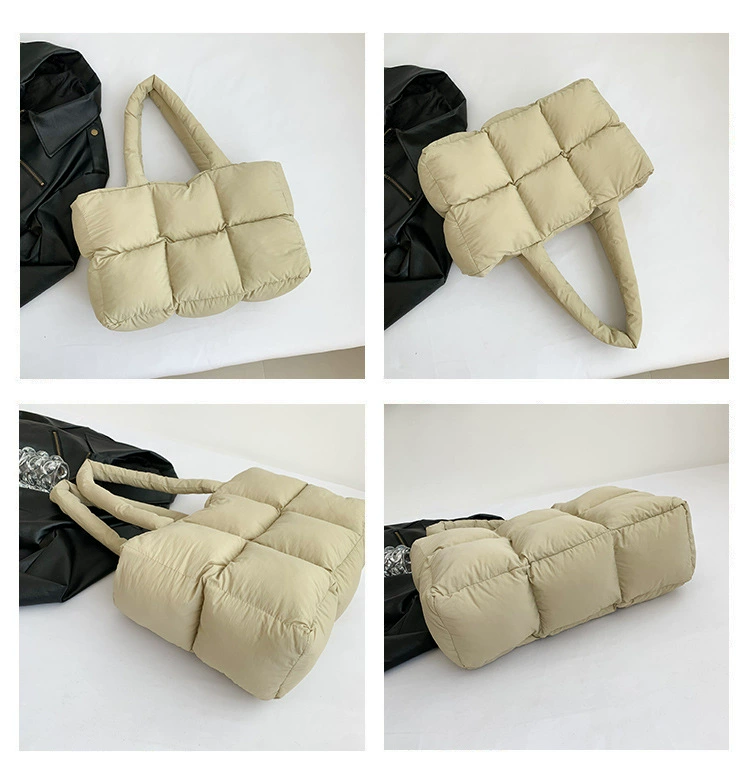 Women Tote Handbags Quilted Plaid Bag Retro Trendy Checkered Waterproof Shoulder Bag Solid Color Winter Soft Large Capacity Bags