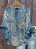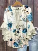 Women’s Floral Print Ruffle Sleeve Blouse Casual Loose Fit Soft Comfortable Shirt Top for Daily Office Wear