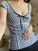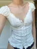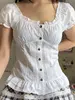 Womens Kawaii Corset Tops 2000s T-shirt Lace Trim Vintage Button V Neck Slim Tee Tops Summer y2k Shirts Harajuku
