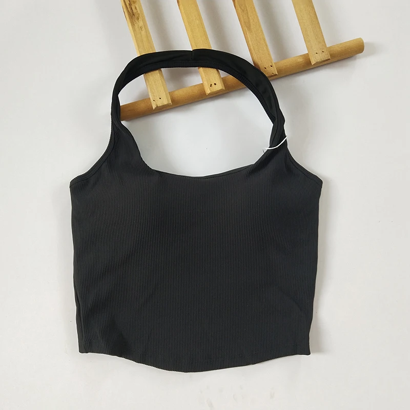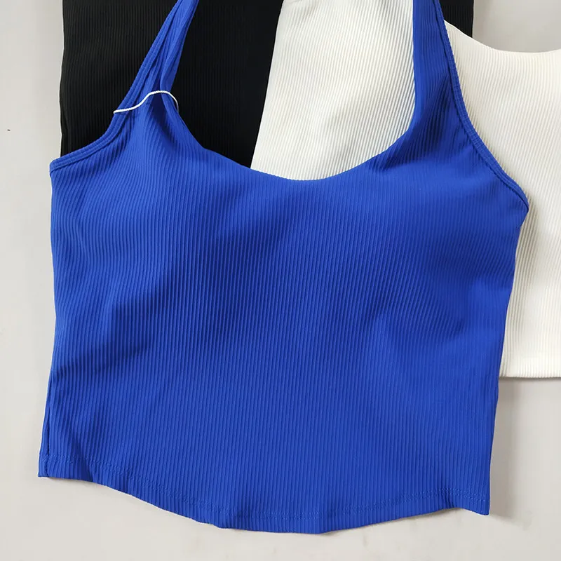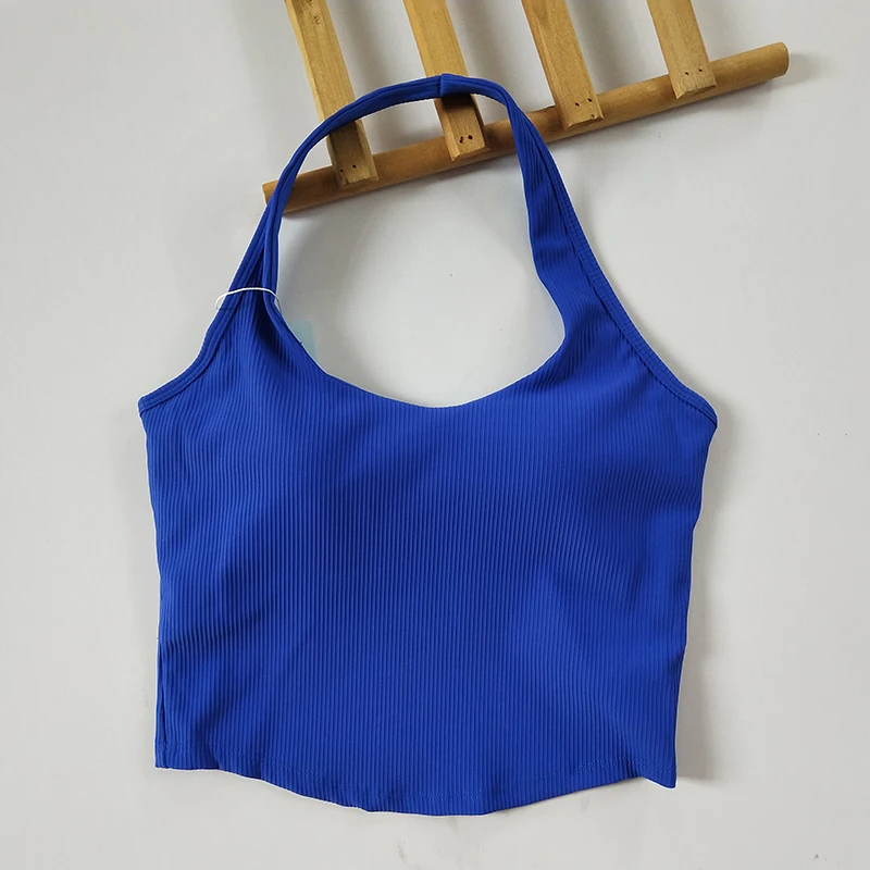 Women’s Sexy Halter Sports Bra – Fixed Cup Seamless, Quick Dry Shockproof, Yoga Gym Workout Tank Top