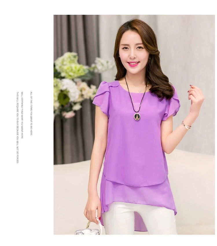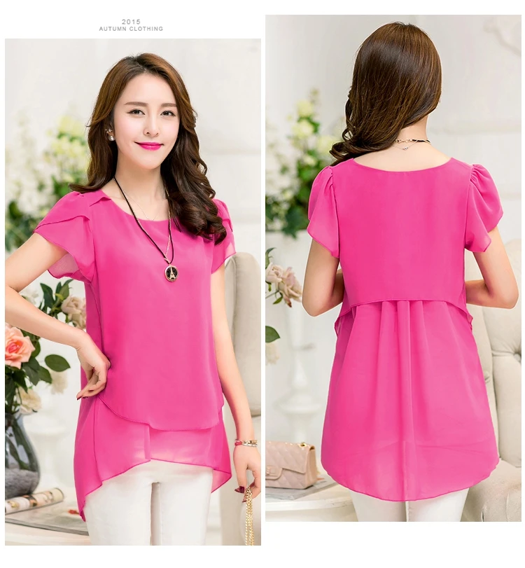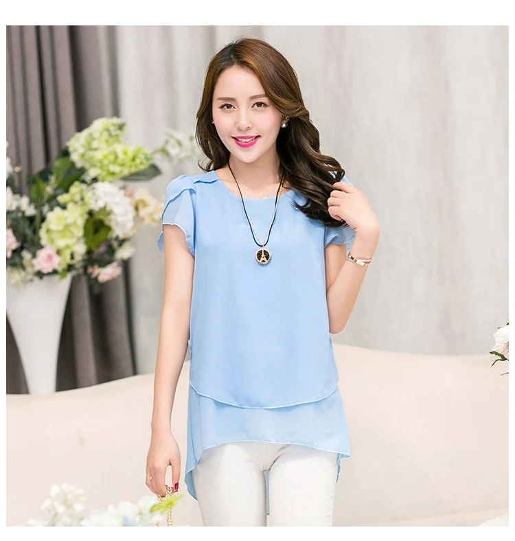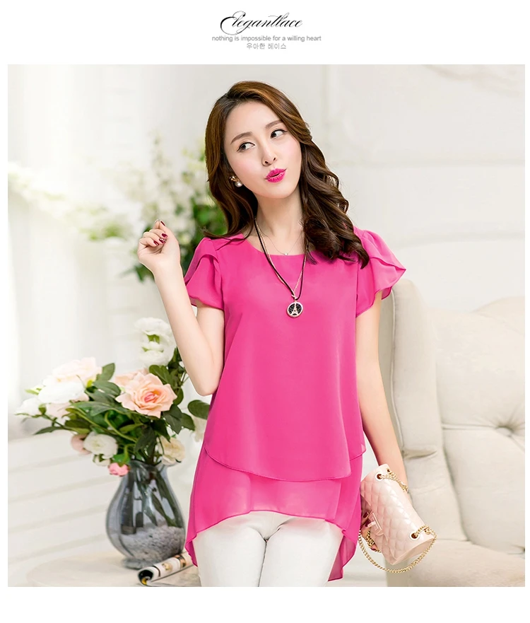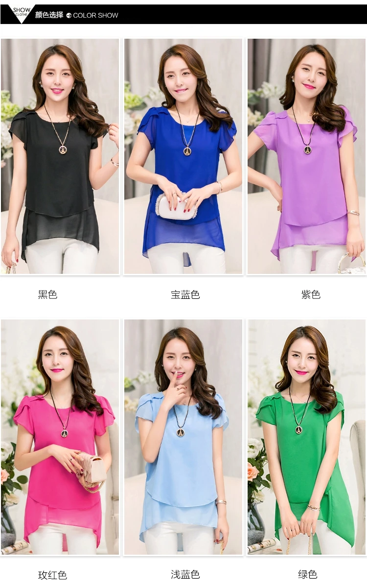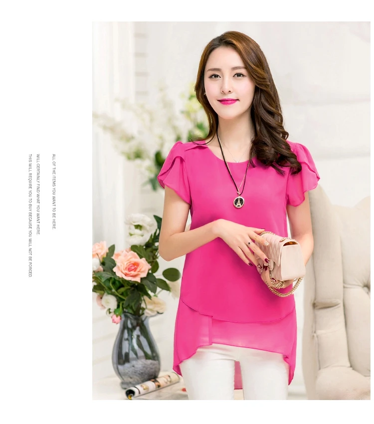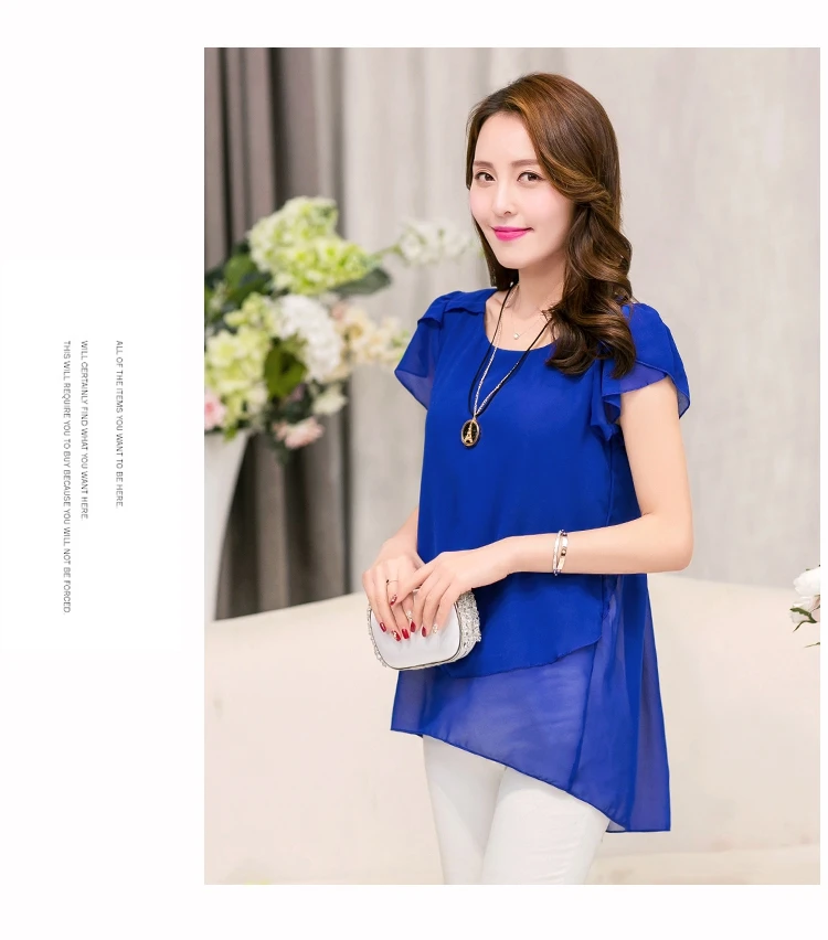 Womens Short Sleeve Chiffon Blouse Peplum Summer Tops Ladies Long Office Shirts Ruffle Blouse Femme 4XL 5XL