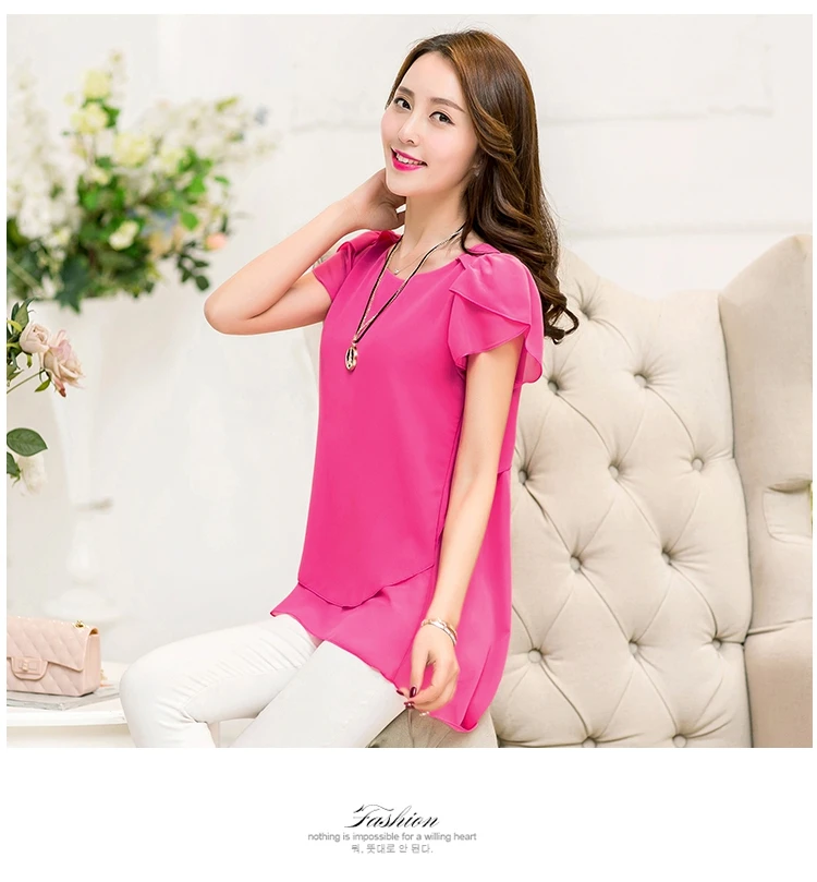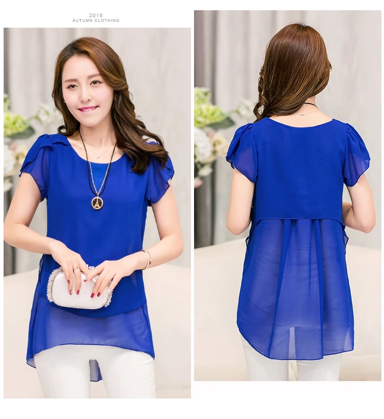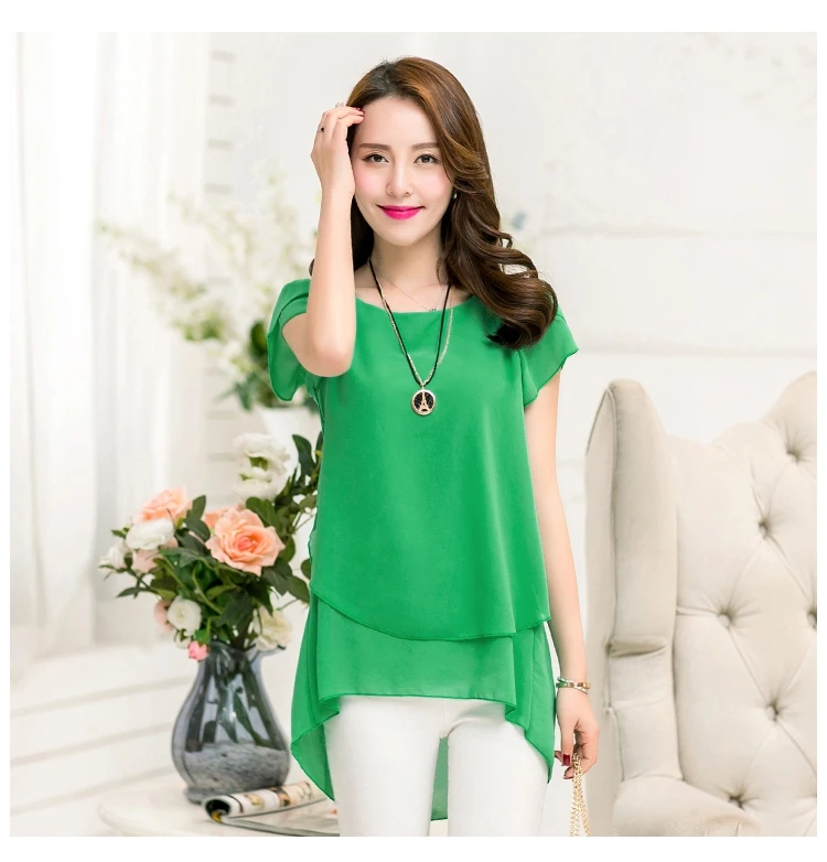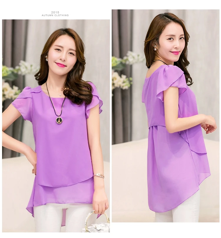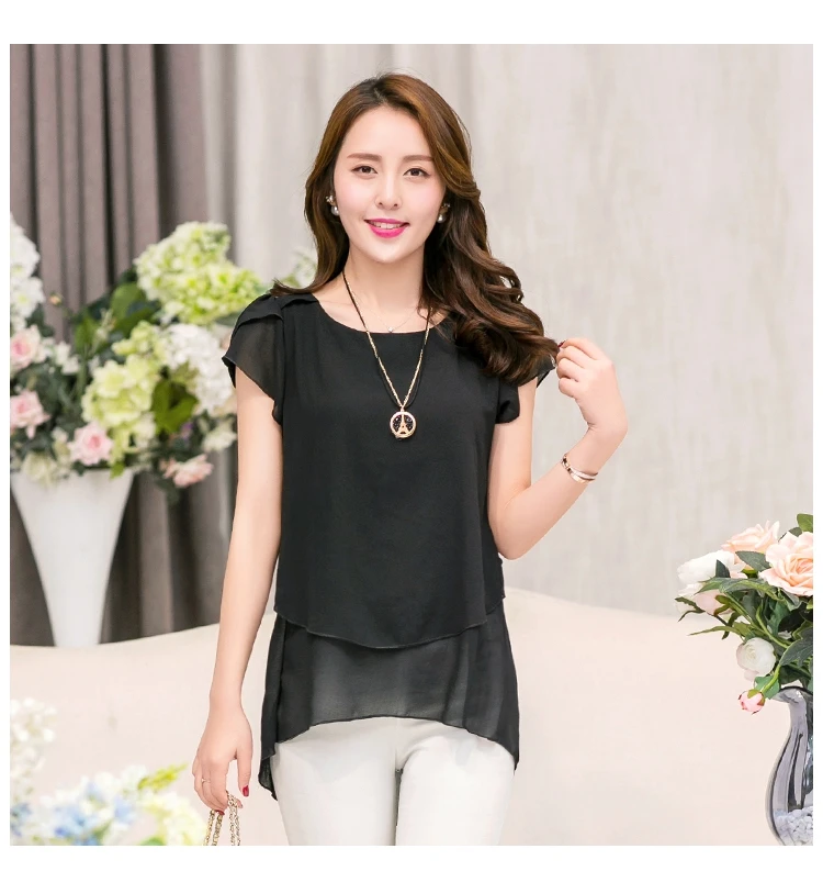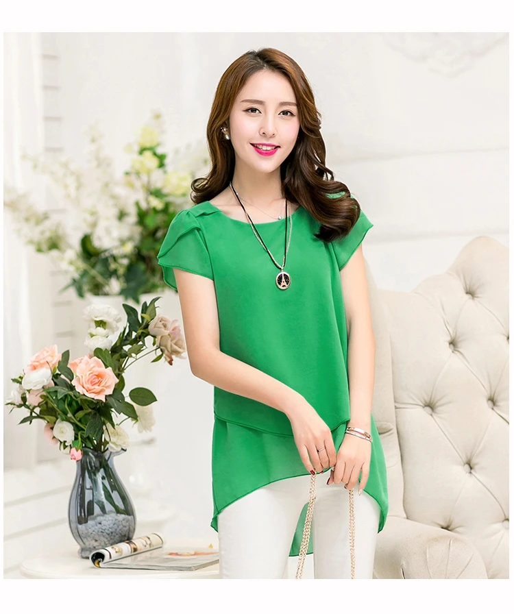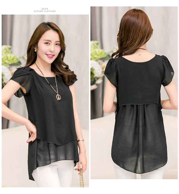 Womens Short Sleeve Chiffon Blouse Peplum Summer Tops Ladies Long Office Shirts Ruffle Blouse Femme 4XL 5XL