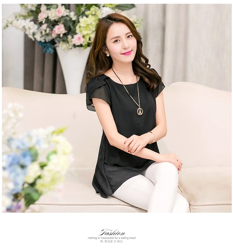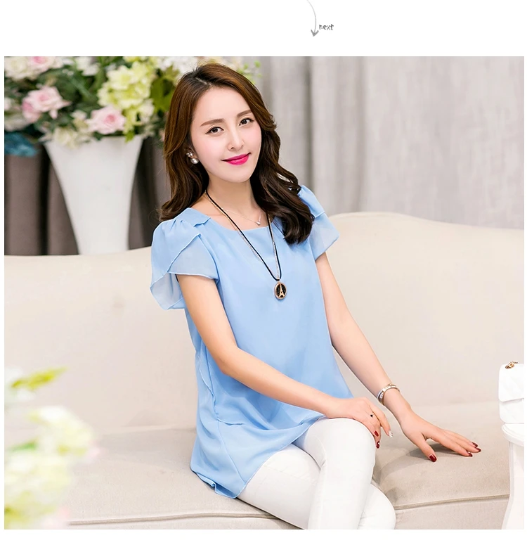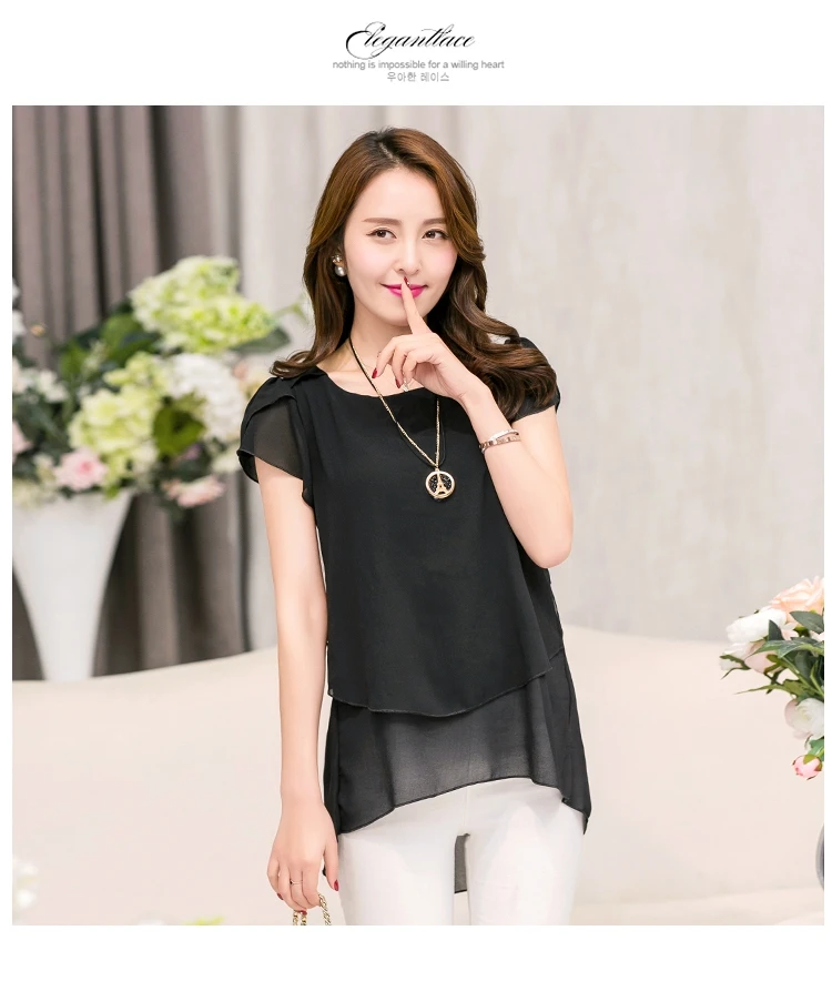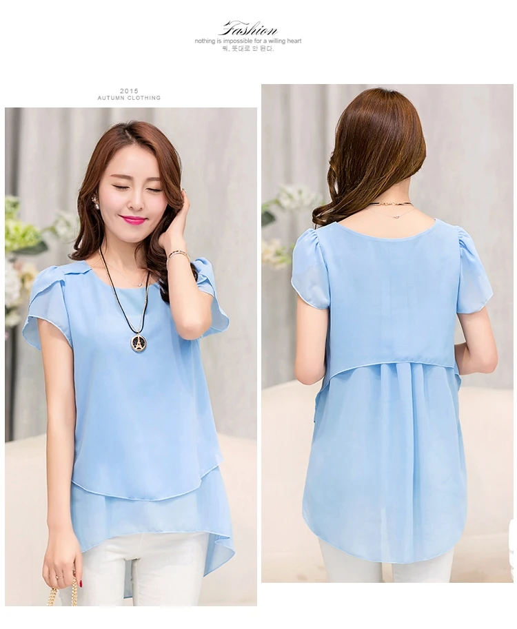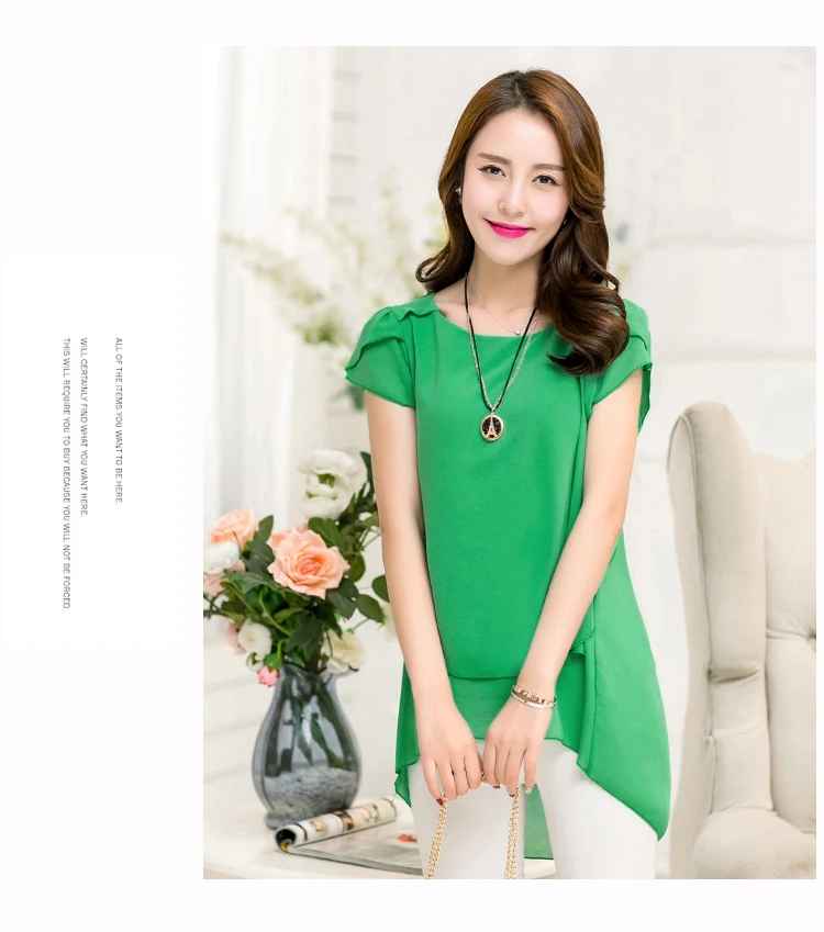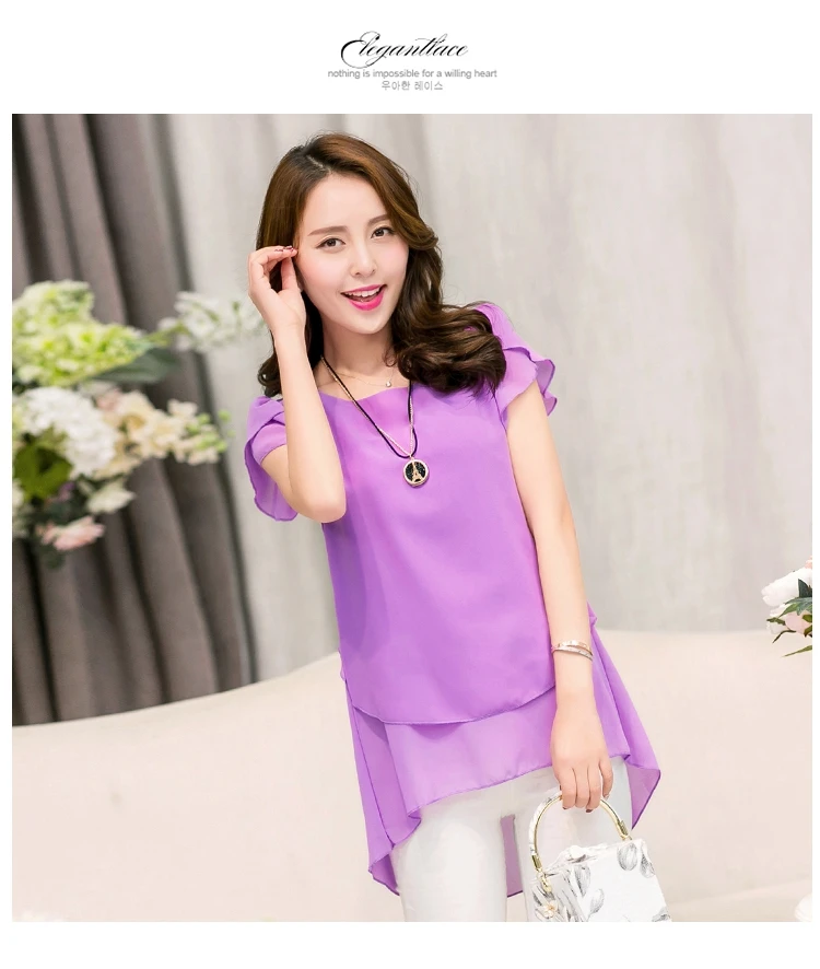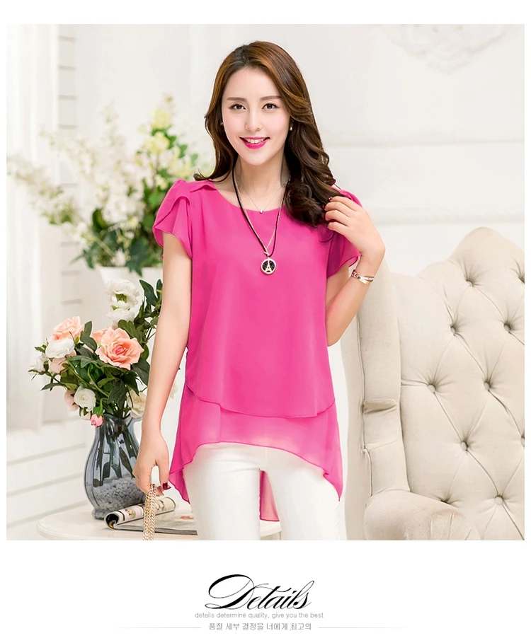 Womens Short Sleeve Chiffon Blouse Peplum Summer Tops Ladies Long Office Shirts Ruffle Blouse Femme 4XL 5XL