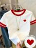 Womens Short Sleeve Valentines Day Edition Red Heart Print T-Shirt Girl Round Neck Tee Outdoor Sports plus-size women’s clothing