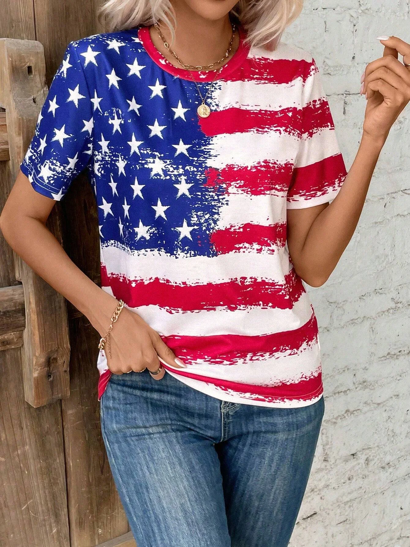 Women’s T-Shirts For Women American Flag 3d Print Tops Casual Street Femalewear Summer Oversized T-Shirt Fashion Y2k Clothing